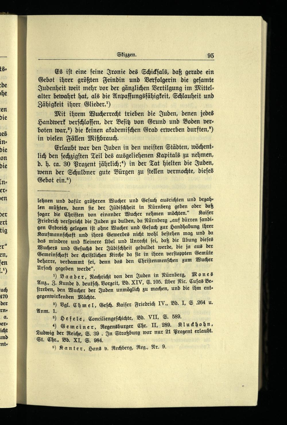 1) Baader, Nachricht von den Juden in Nürnberg , Mones Anz., Z. Kunde d. deutſch . Vorzeit, Bd. XIV, S. 105. Über Nic. Cuſas Beſtreben, den Wucher der Juden unmöglich zu machen, und die ihm entgegenwirkenden Mächte.