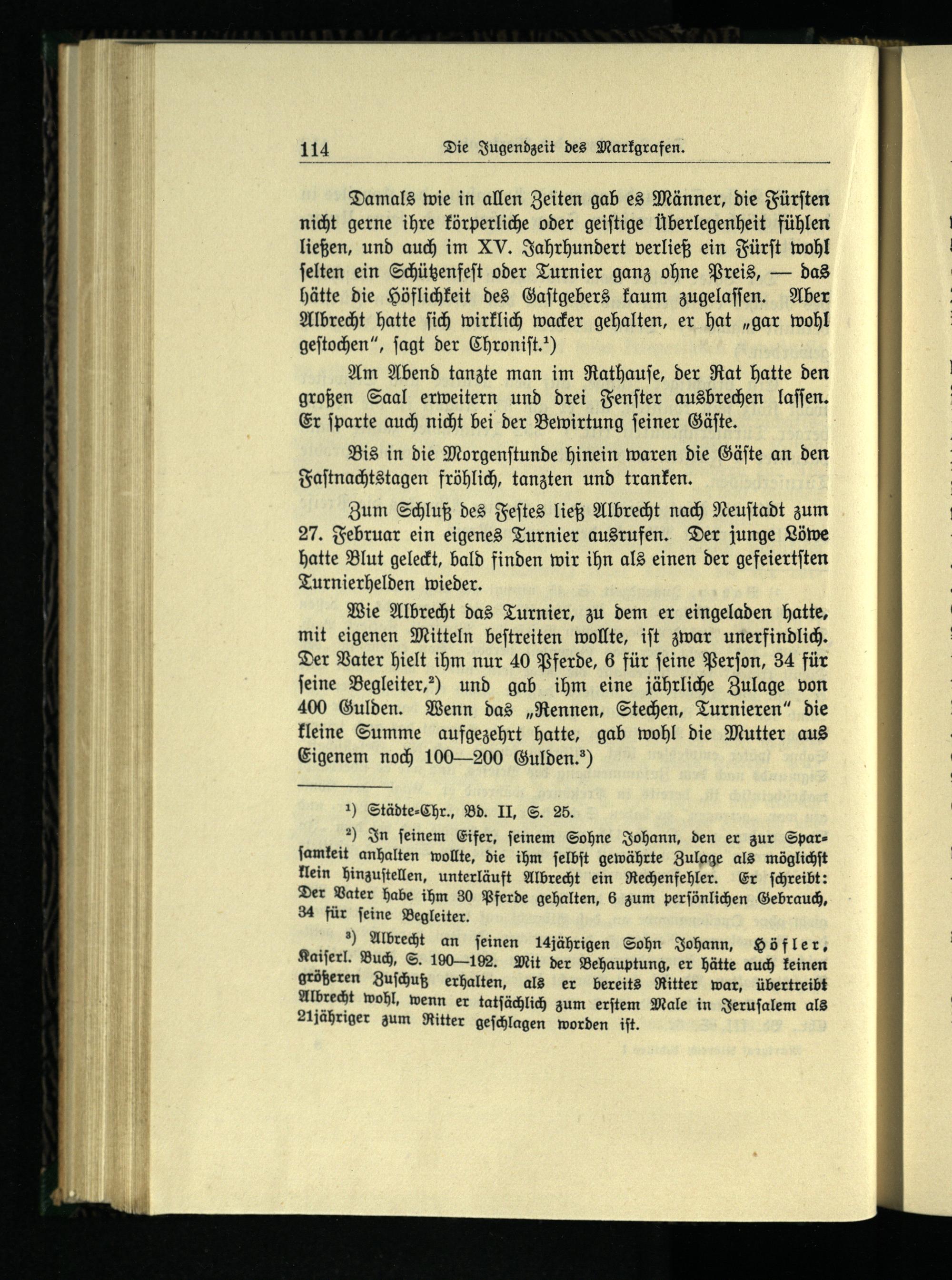 Zum Schluß des Feſtes ließ Albrecht nach Neuſtadt zum 27. Februar ein eigenes Turnier ausrufen. Der junge Löwe hatte Blut geleckt, bald finden wir ihn als einen der gefeiertſten Turnierhelden wieder.
