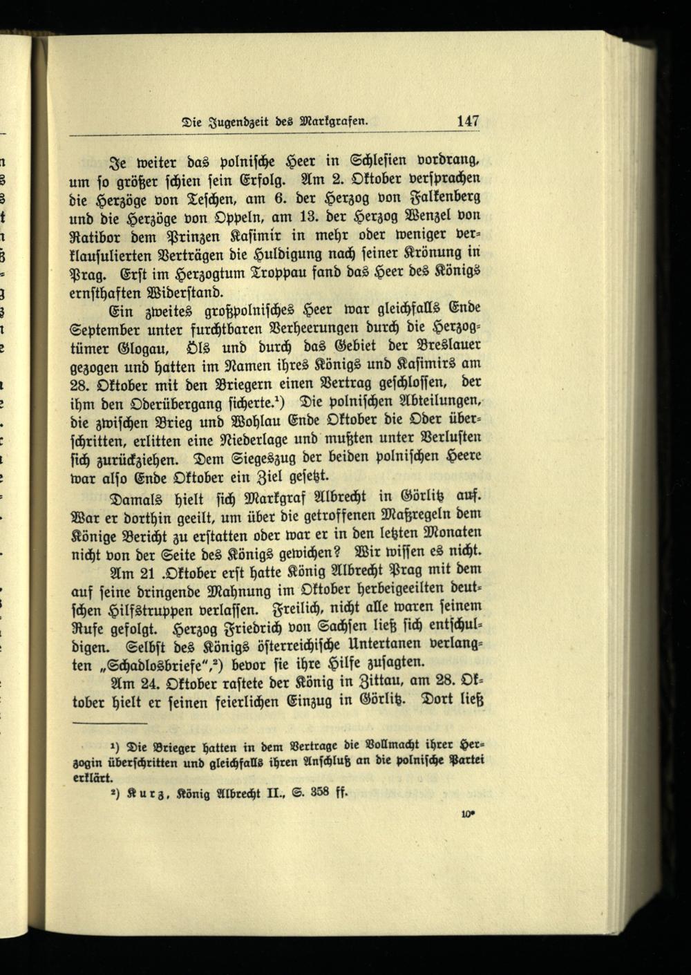 Damals hielt ſich Markgraf Albrecht in Görlitz auf. War er dorthin geeilt, um über die getroffenen Maßregeln dem Könige Bericht zu erſtatten oder war er in den letzten Monaten nicht von der Seite des Königs gewichen? Wir wiſſen es nicht.