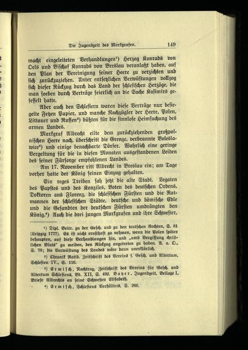 3) Ermiſch, Nachtrag, Zeitſchrift des Vereins für Geſch. und Altertum Schleſiens, Bd. XII, S. 492. Bayer, Jugendzeit, Beilage I, Briefe Albrechts an ſeine Schweſter Eliſabeth.