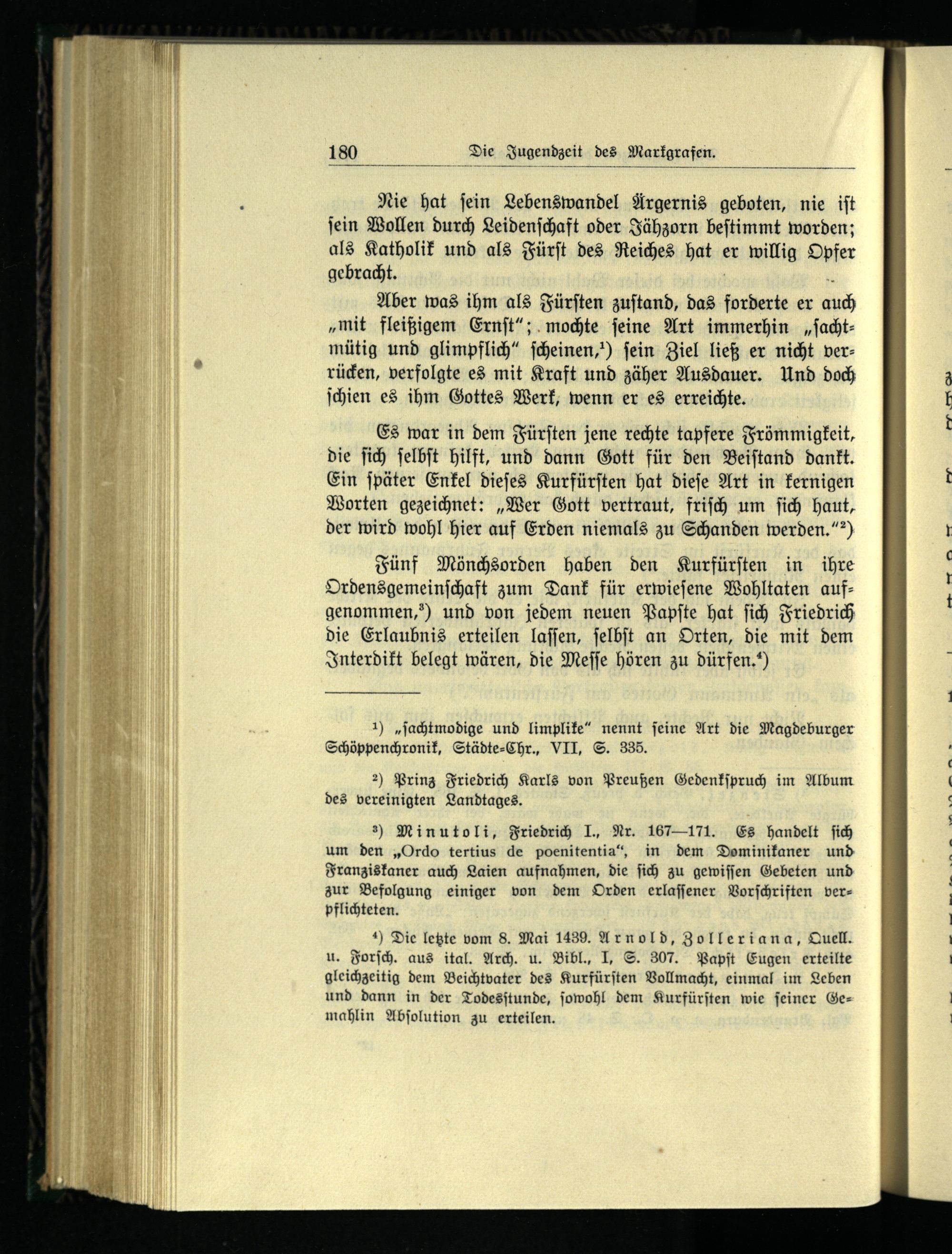 Fünf Mönchsorden haben den Kurfürſten in ihre Ordensgemeinſchaft zum Dank für erwieſene Wohltaten aufgenommen,) und von jedem neuen Papſte hat ſich Friedrich