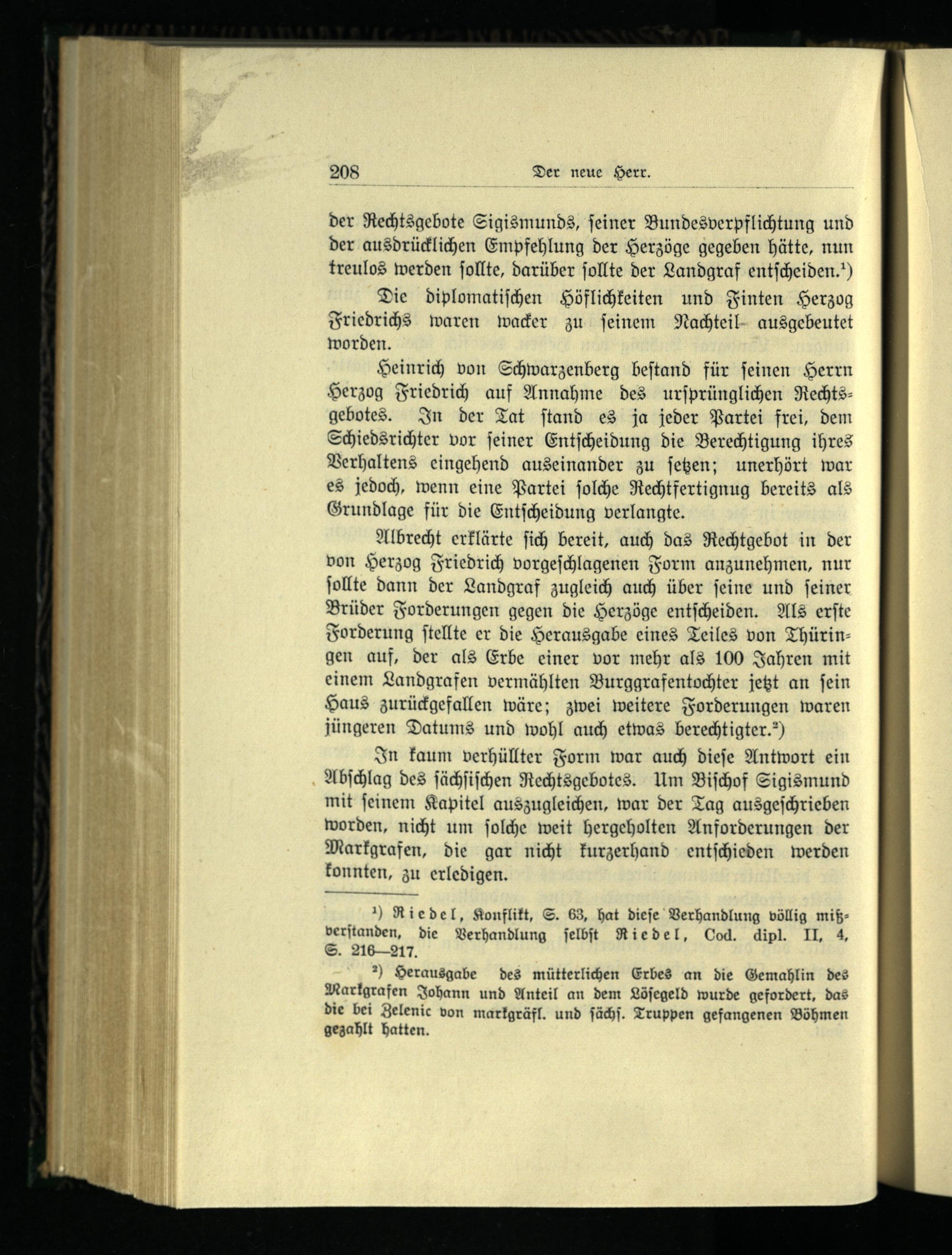 In kaum verhüllter Form war auch dieſe Antwort ein Abſchlag des ſächſiſchen Rechtsgebotes. Um Biſchof Sigismund mit ſeinem Kapitel auszugleichen, war der Tag ausgeſchrieben worden, nicht um ſolche weit hergeholten Anforderungen der Markgrafen, die gar nicht kurzerhand entſchieden werden konnten, zu erledigen.