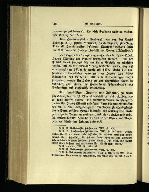 Mit freundlichem„Erweiſen und Erbieten“, zu denen ſich Ludwig wie der hl. Thomas verhielt, der nicht glaubte, was er nicht greifen konnte, mit unausführbaren Ratſchlägen“) hielten ihn Herzog Albrecht und Frau Anna bis zum Eintreffen des am 9. Mai ausgegangenen königlichen Friedensgebotes hin.“) Dann erklärte Herzog Albrecht , daß Ludwig kein Recht hätte, ihn in Sachen zu mahnen, durch die er ehrlos und rechtlos werden könnte; denn bei Verluſt ſeiner Ehren und Rechte habe der König ihm Frieden geboten.“)