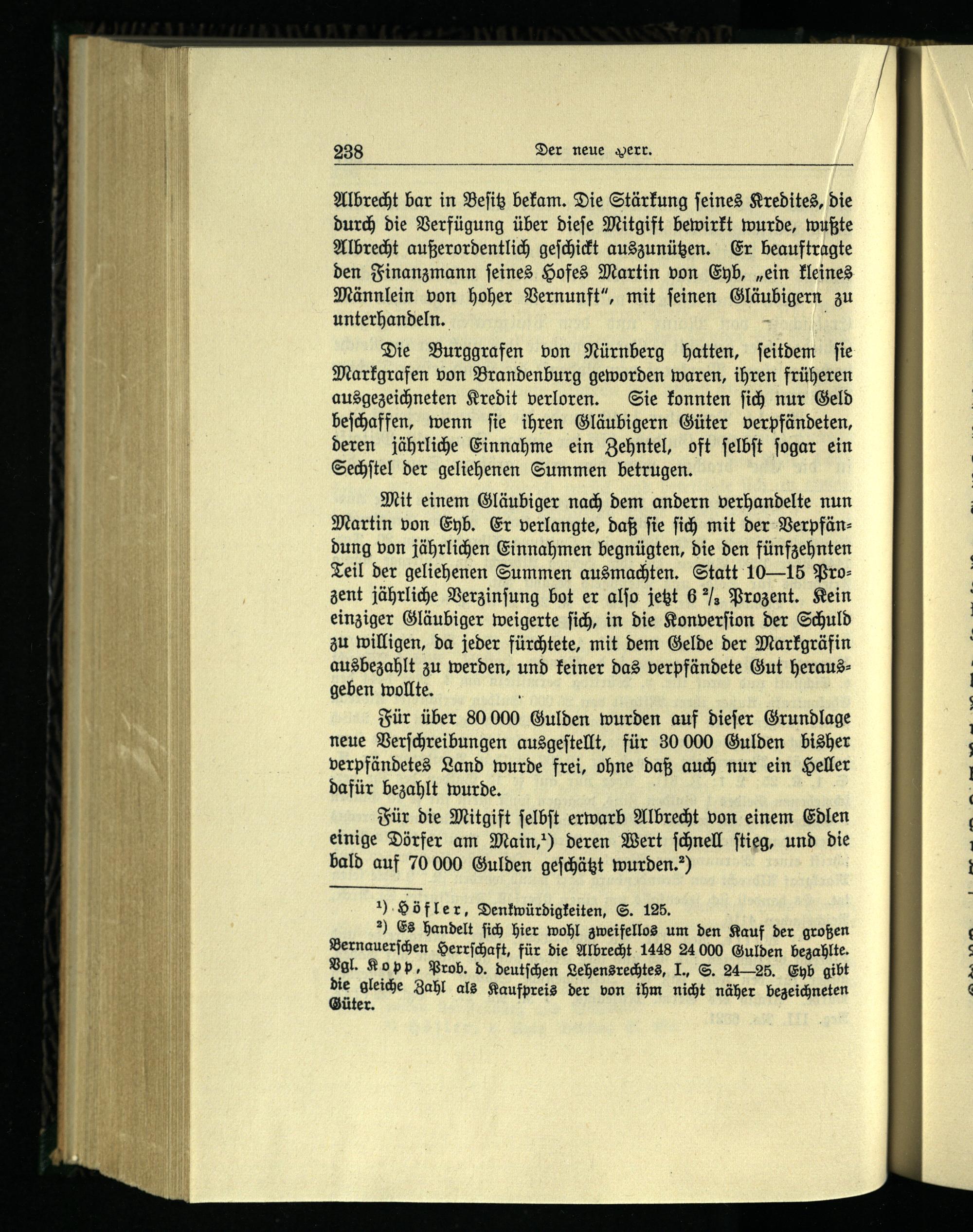 Für die Mitgift ſelbſt erwarb Albrecht von einem Edlen einige Dörfer am Main ,) deren Wert ſchnell ſtieg, und die bald auf 70 000 Gulden geſchätzt wurden.“