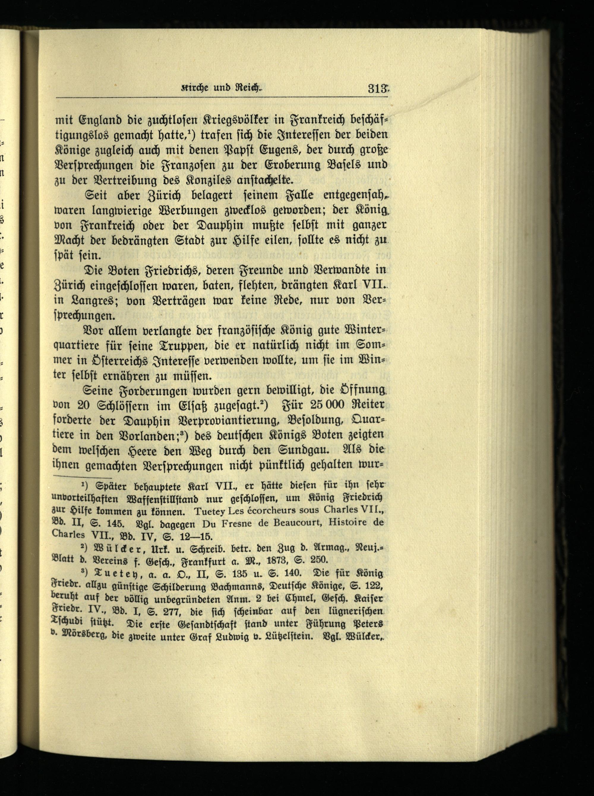 ) Später behauptete Karl VII. , er hätte dieſen für ihn ſehr unvorteilhaften Waffenſtillſtand nur geſchloſſen, um König Friedrich zur Hilfe kommen zu können. Tuetey Les&corcheurs sous Charles VII. , Bd. II, S. 145. Vgl. dagegen Du Fresne de Beaucourt, Histoire de Charles VII., Bd. IV, S. 12—15.