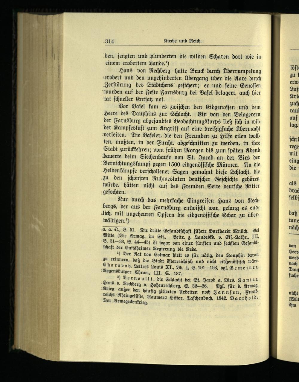 ) Vernoulli, die Schlacht bei St. Jacob a. Birs . Kanter, Dans v. Rechberg v. Hohenrechberg, S. 32—36. Vgl. für d. Armag. Krieg außer den häufig zitierten Arbeiten noch Jannſen, Frank