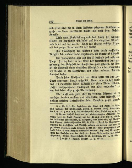 Durch ſeine Wirkſamkeit vor allem hatte ſich das zum Spott gewordene Konzil aufgelöſt. Wenn man an der Kurie noch ein Jahrzehnt ſpäter Albrecht als einen Mann rühmte,