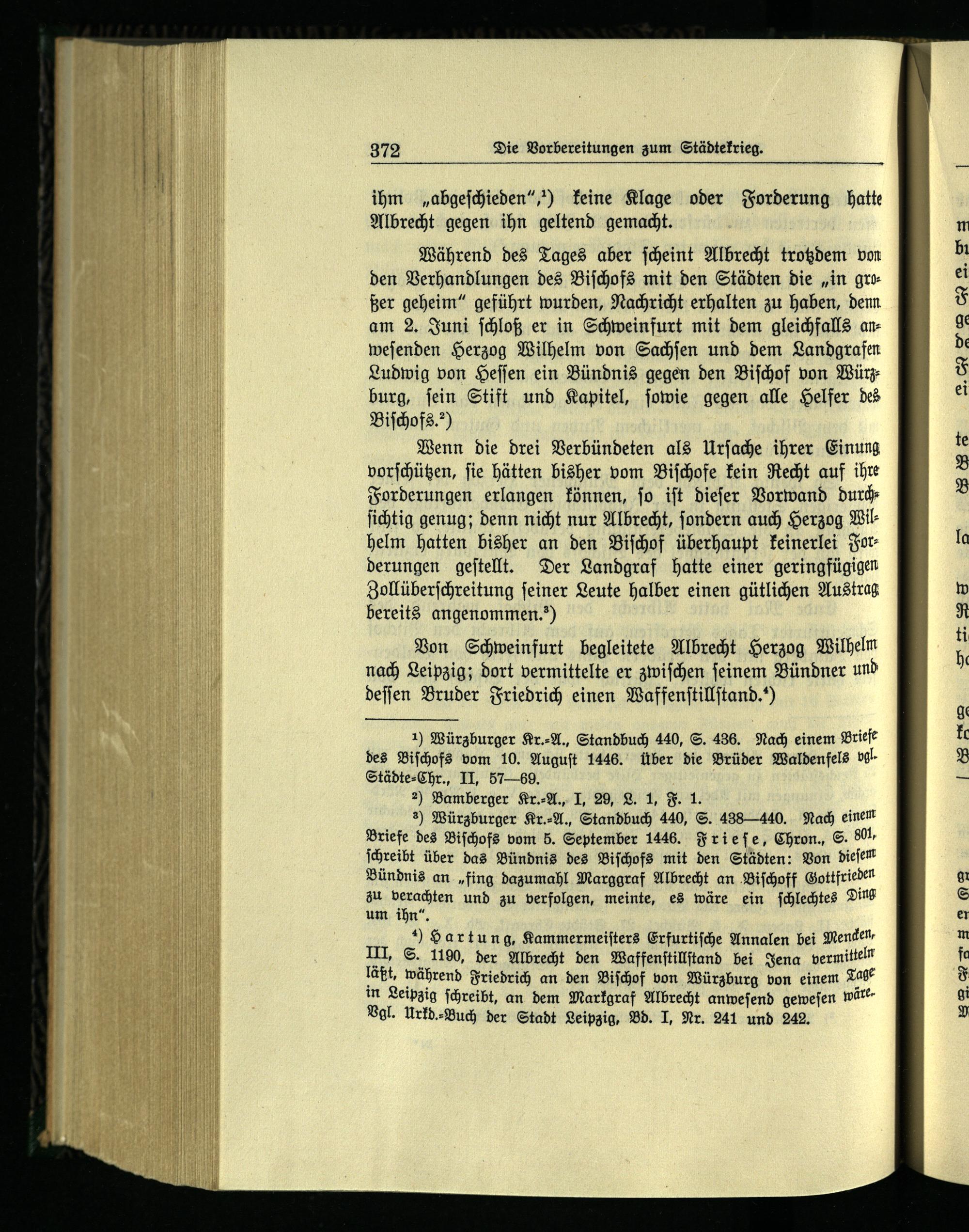 Von Schweinfurt begleitete Albrecht Herzog Wilhelm nach Leipzig ; dort vermittelte er zwiſchen ſeinem Bündner und deſſen Bruder Friedrich einen Waffenſtillſtand.“
