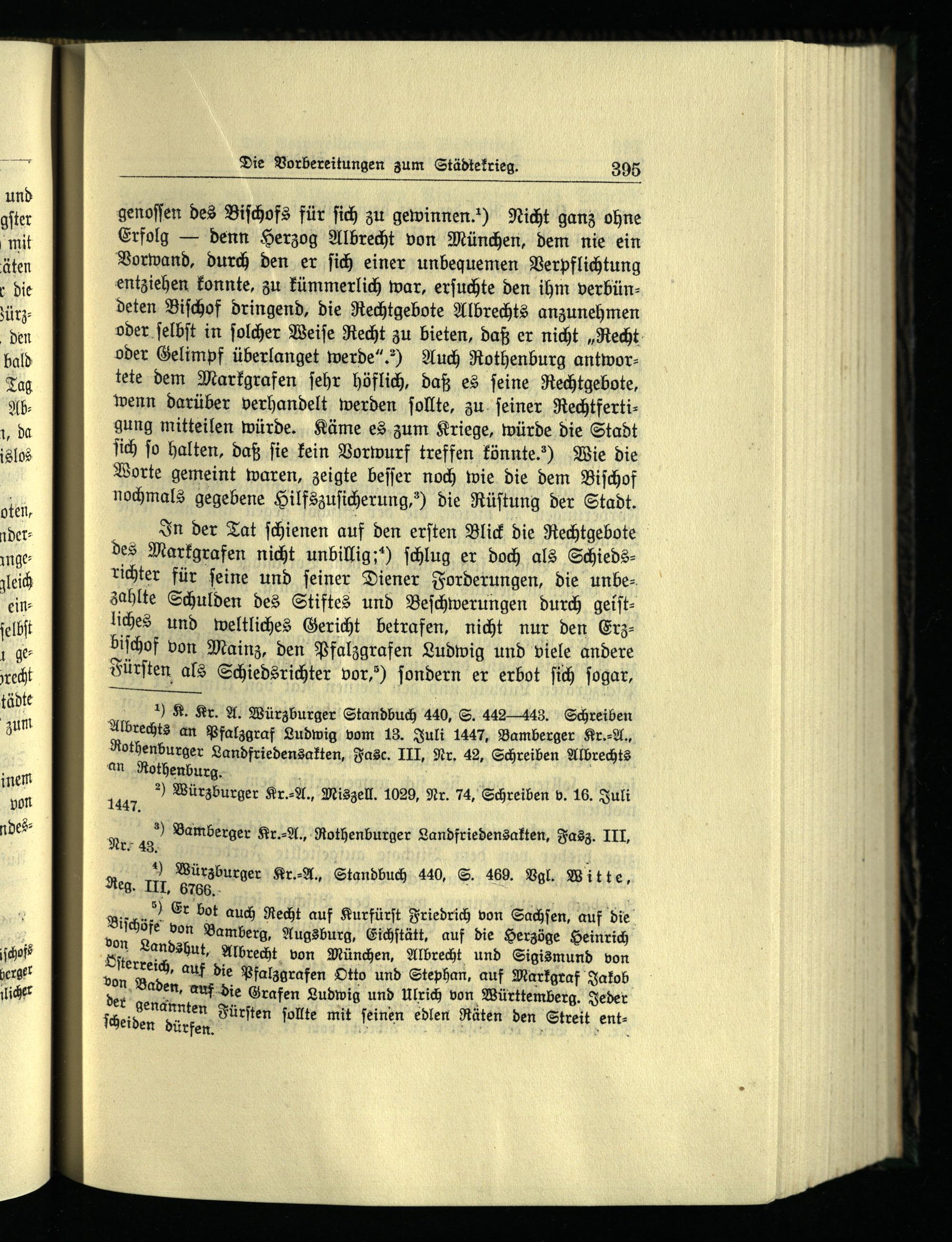 ) K. Kr. A. Würzburger Standbuch 440, S. 442443. Schreiben Albrechts an Pfalzgraf Ludwig vom 13. Juli 1447, Bamberger Kr.⸗A., Rothenburger Landfriedensakten, Fasc. III, Nr. 42, Schreiben Albrechts an Rothenburg. | 165) Würzburger Kr.⸗A., Misgell. 1029, Nr. 74, Schreiben b. 16. Juli