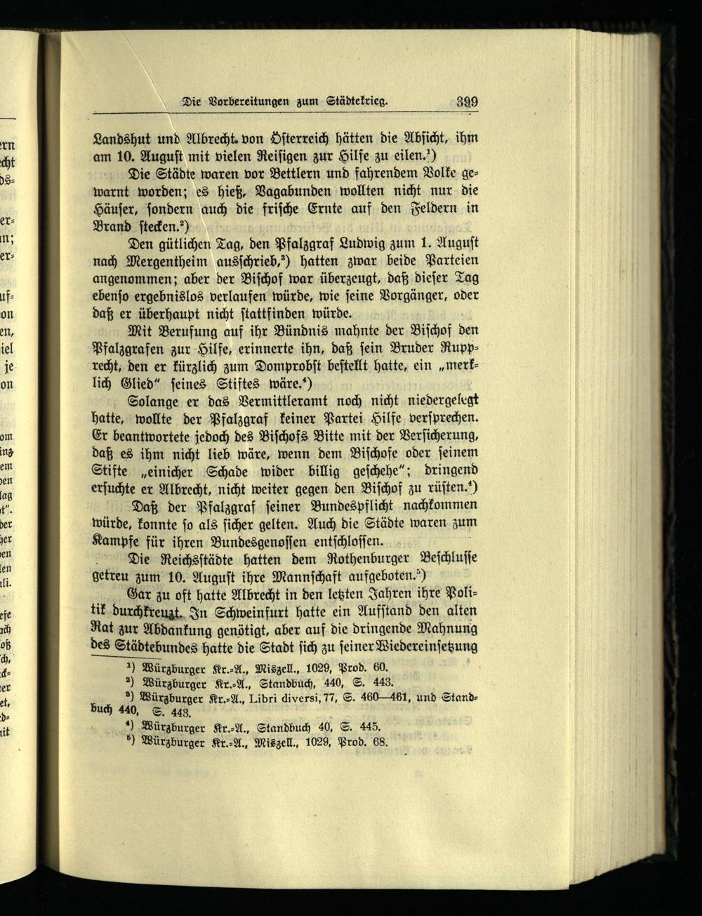 Den gütlichen Tag, den Pfalzgraf Ludwig zum 1. Auguſt nach Mergentheim ausſchrieb,“) hatten zwar beide Parteien angenommen; aber der Biſchof war überzeugt, daß dieſer Tag ebenſo ergebnislos verlaufen würde, wie ſeine Vorgänger, oder daß er überhaupt nicht ſtattfinden würde.