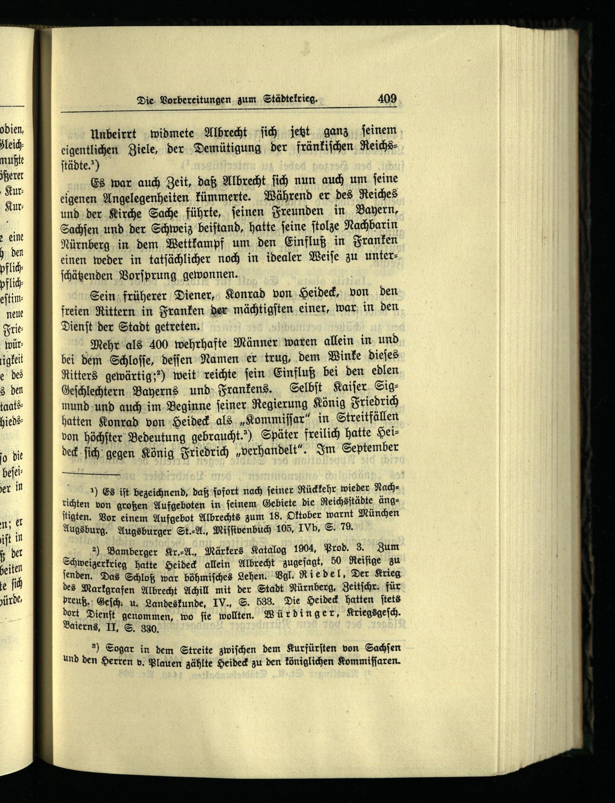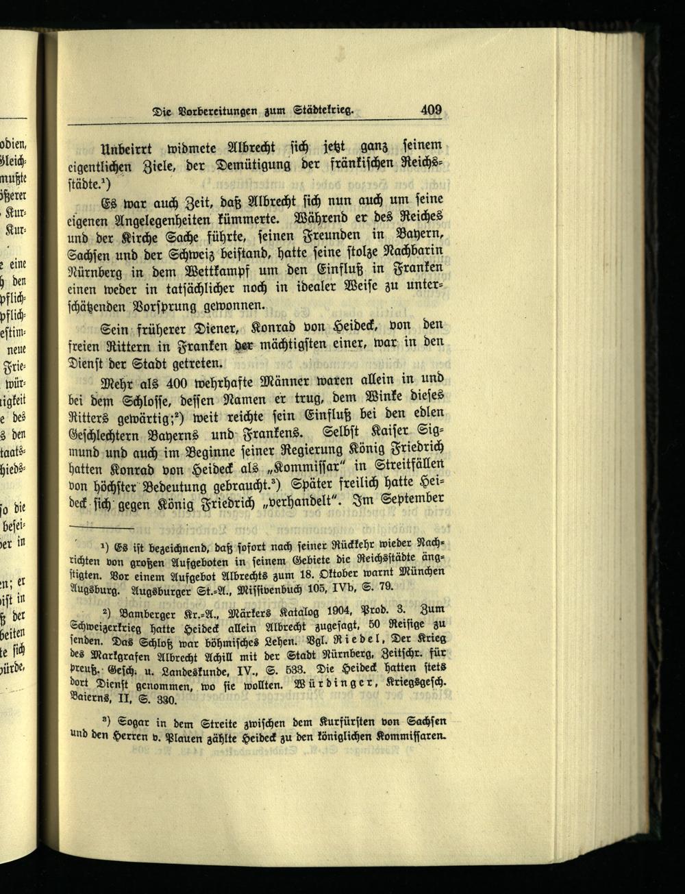 Sein früherer Diener, Konrad von Heideck, von den freien Rittern in Franken der mächtigſten einer, war in den Dienſt der Stadt getreten.|;
