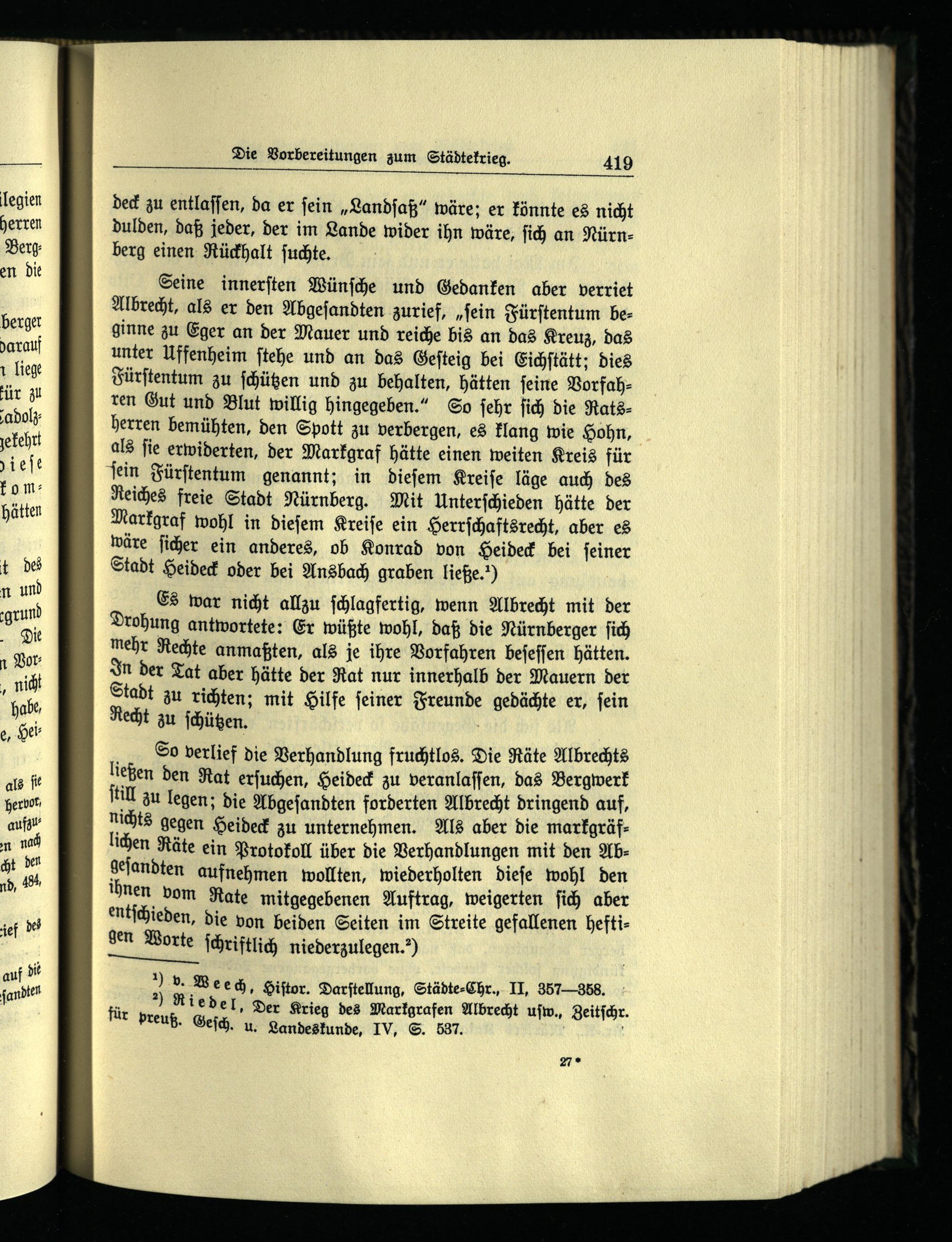 ) v. We ech, Hiſtor. Darſtellung, Städte⸗Chr., II, 357358. Riedel, Der Krieg des Markgrafen Albrecht uſw., Zeitſchr.