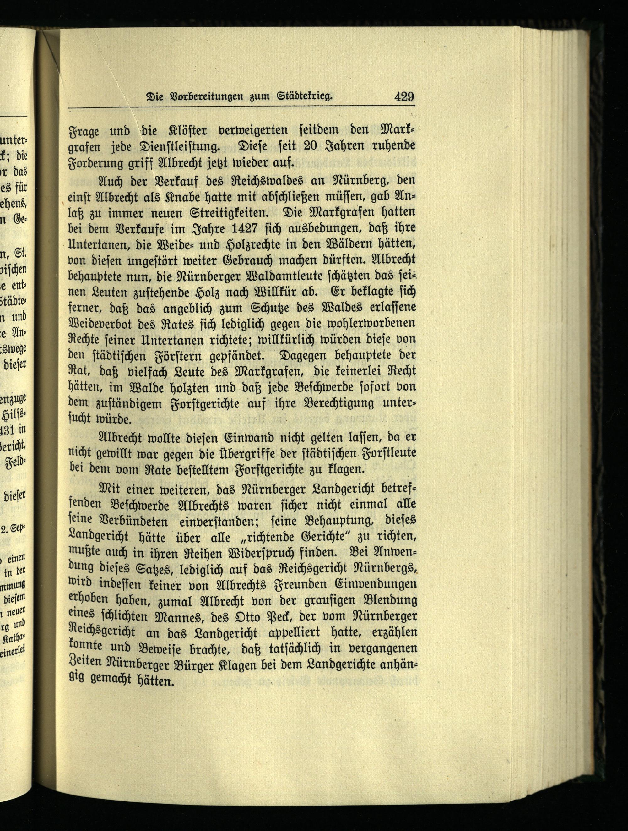 ; Albrecht wollte dieſen Einwand nicht gelten laſſen, da er nicht gewillt war gegen die Übergriffe der ſtädtiſchen Forſtleute bei dem vom Rate beſtelltem Forſtgerichte zu klagen.
