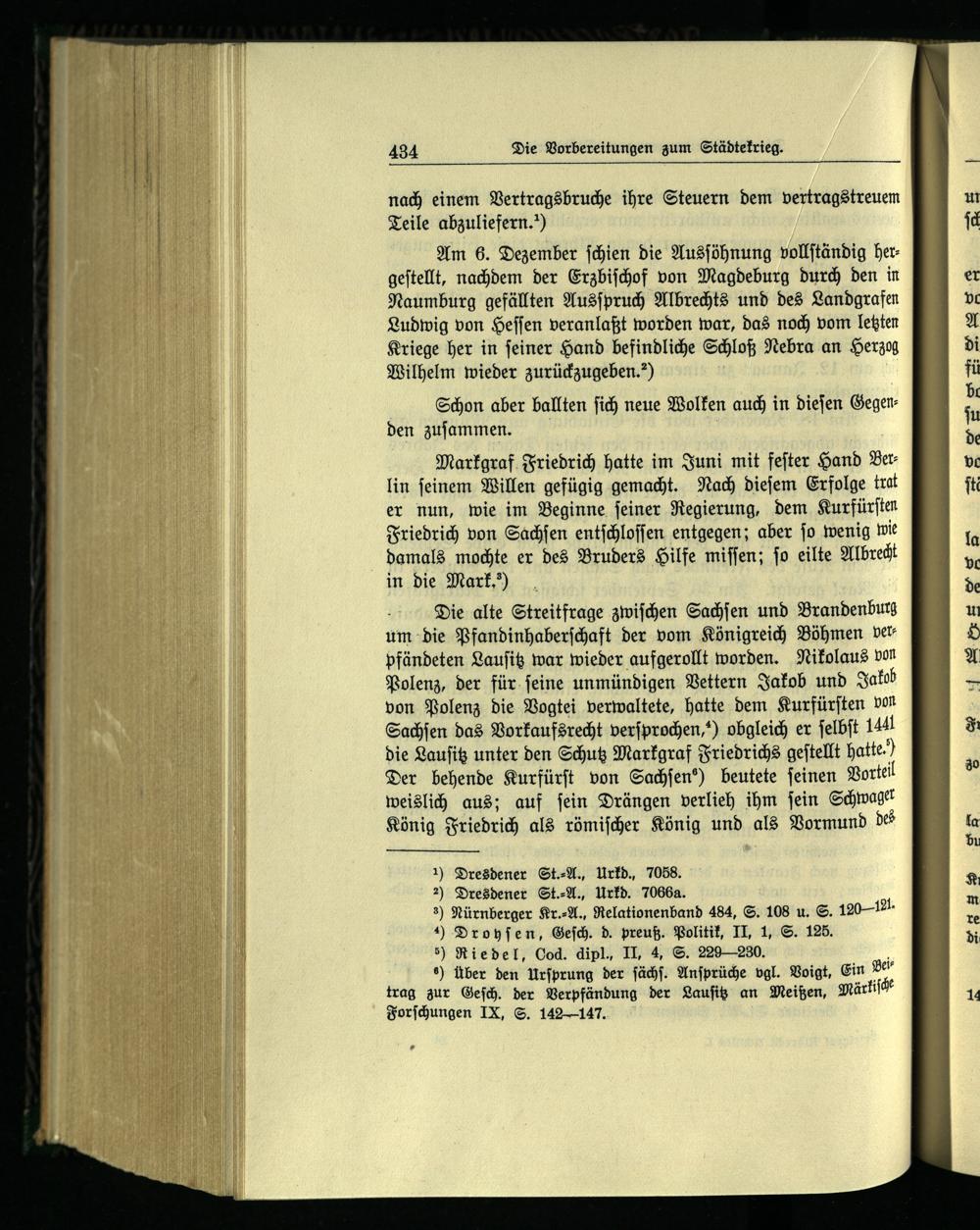 1) Dresdener St.⸗A., Urkd., 7058. 2) Dresdener St.⸗A., Urkd. 7066a. 3) Nürnberger Kr.⸗A., Relationenband 484, S. 108 u. S. 120121. ) Droyſen , Geſch. d. preuß. Politik, II, 1, S. 125. 5) Riedel, Cod. dipl., II, 4, S. 229— 230. e) Über den Urſprung der ſächſ. Anſprüche vgl. Voigt, Ein“ trag zur Geſch. der Verpfändung der Lauſitz an Meißen , Märki Forſchungen IX, S. 142147.