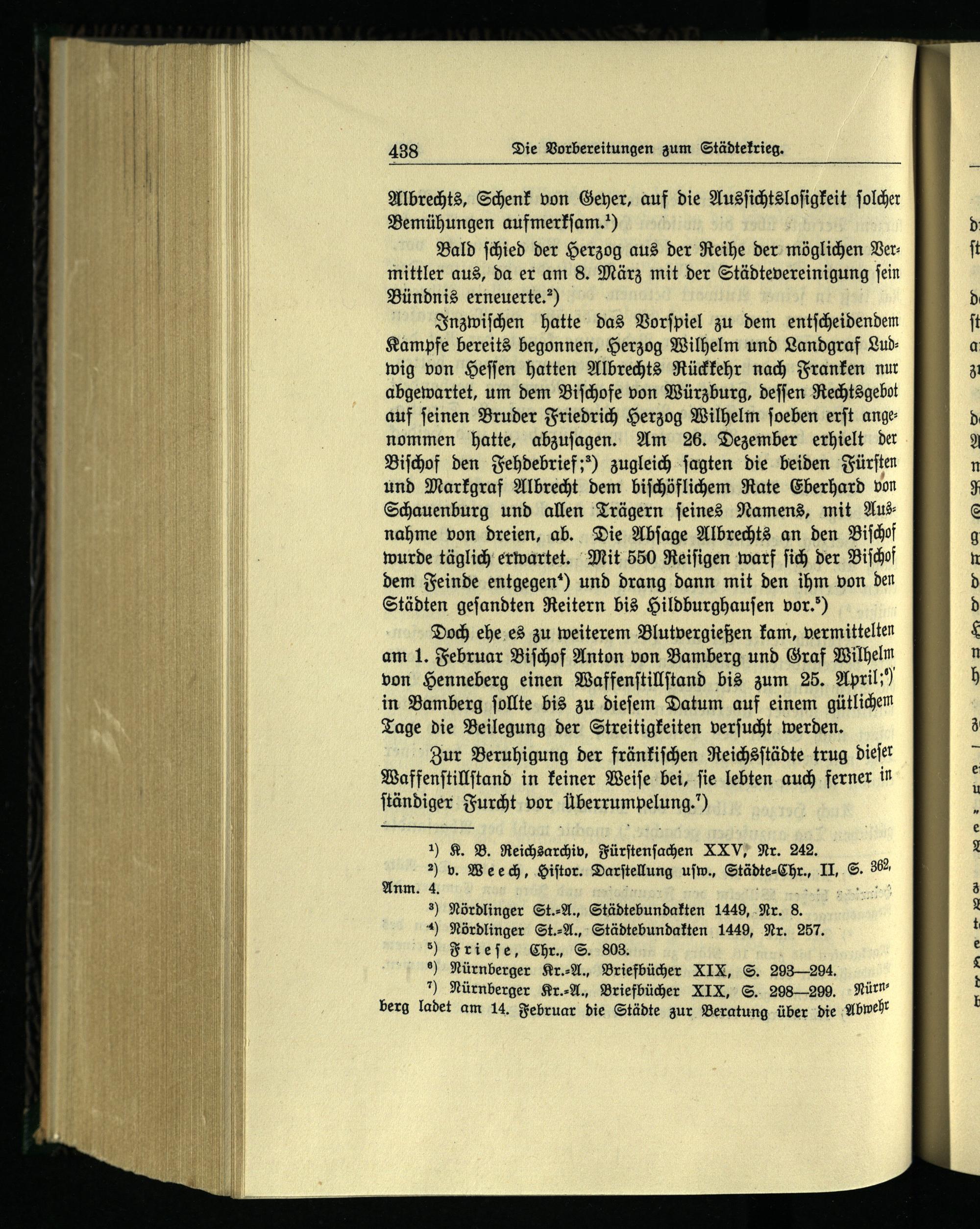 Zur Beruhigung der fränkiſchen Reichsſtädte trug dieſer Waffenſtillſtand in keiner Weiſe bei, ſie lebten auch ferner in ſtändiger Furcht vor Überrumpelung.“)