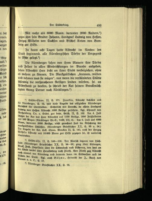 In kaum acht Tagen hatte Albrecht im Norden der Stadt beginnend, alle Nürnbergiſchen Dörfer der Umgegend in Aſche gelegt.“)