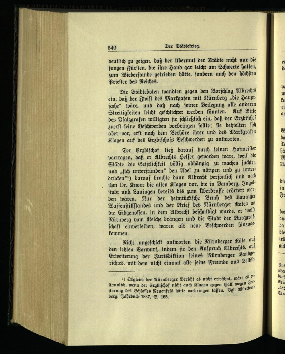 die Eidgenoſſen, in dem Albrecht beſchuldigt wurde, er wolle Nürnberg vom Reiche drängen und die Stadt der Burggrafſchaft einverleiben, waren als neue Beſchwerden hinzugekommen.