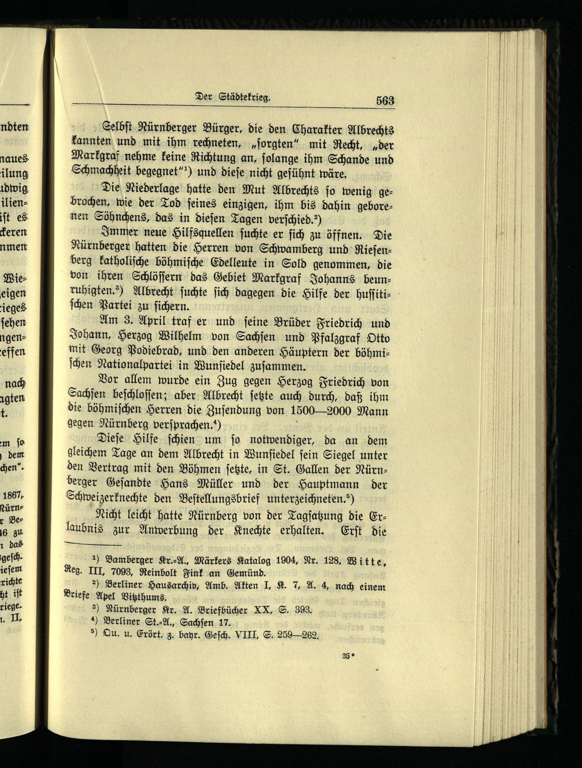 Vor allem wurde ein Zug gegen Herzog Friedrich von Sachſen beſchloſſen; aber Albrecht ſetzte auch durch, daß ihm die böhmiſchen Herren die Zuſendung von 15002000 Mann gegen Nürnberg verſprachen.“)|