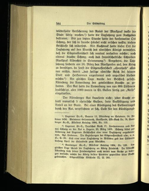 Nürnberg trotz ſeiner Friedensgebote auch weiter vom Reiche zu drängen verſuche, möchte der König beiden Parteien gegenüber ſeine Macht gebrauchen. Eidgenöſſiſche Abſchiede II, S. 241.