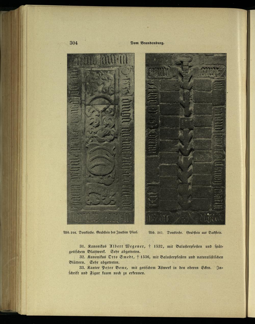 Abb. 216. Domkirche. Grabſtein des Joachim Pfuel. Abb. 217. Domkirche. Grabſtein aus Backſtein.
