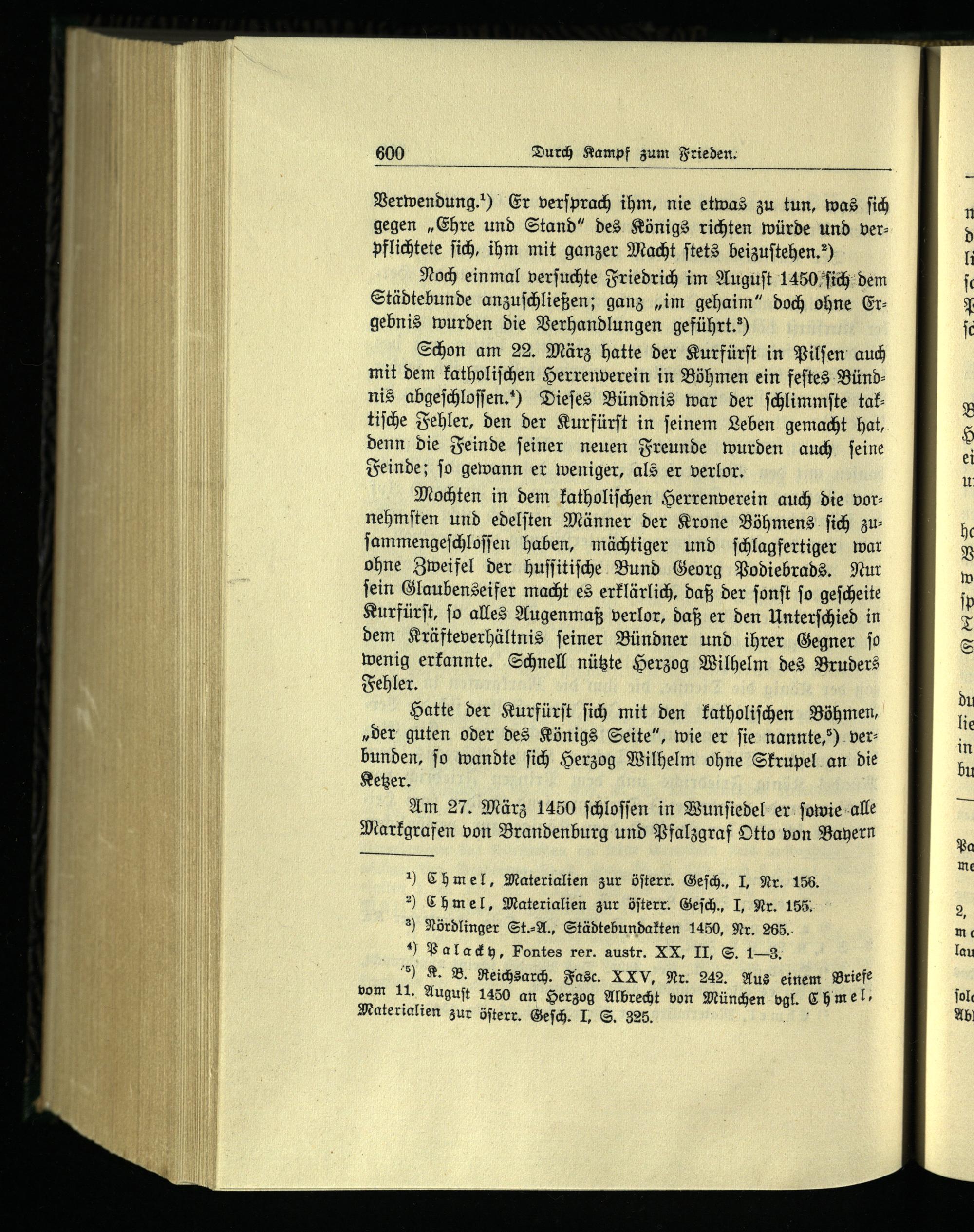 Noch einmal verſuchte Friedrich im Auguſt 1450 ſich dem Städtebunde anzuſchließen; ganz„im gehaim“ doch ohne Ergebnis wurden die Verhandlungen geführt.)