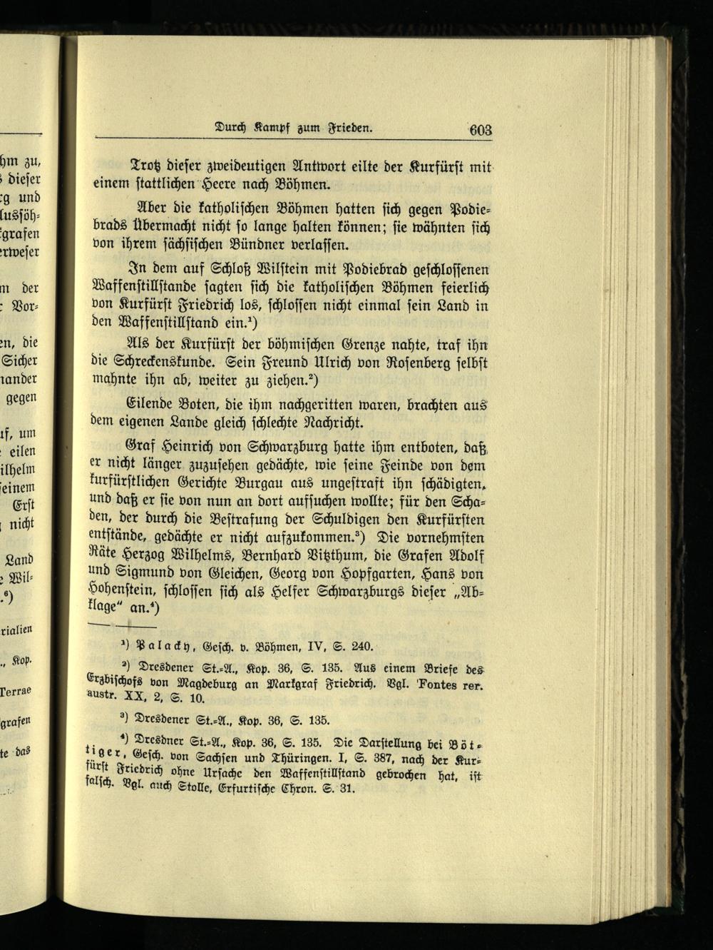 Aber die katholiſchen Böhmen hatten ſich gegen Podiebrads Übermacht nicht ſo lange halten können; ſie wähnten ſich von ihrem ſächſiſchen Bündner verlaſſen.