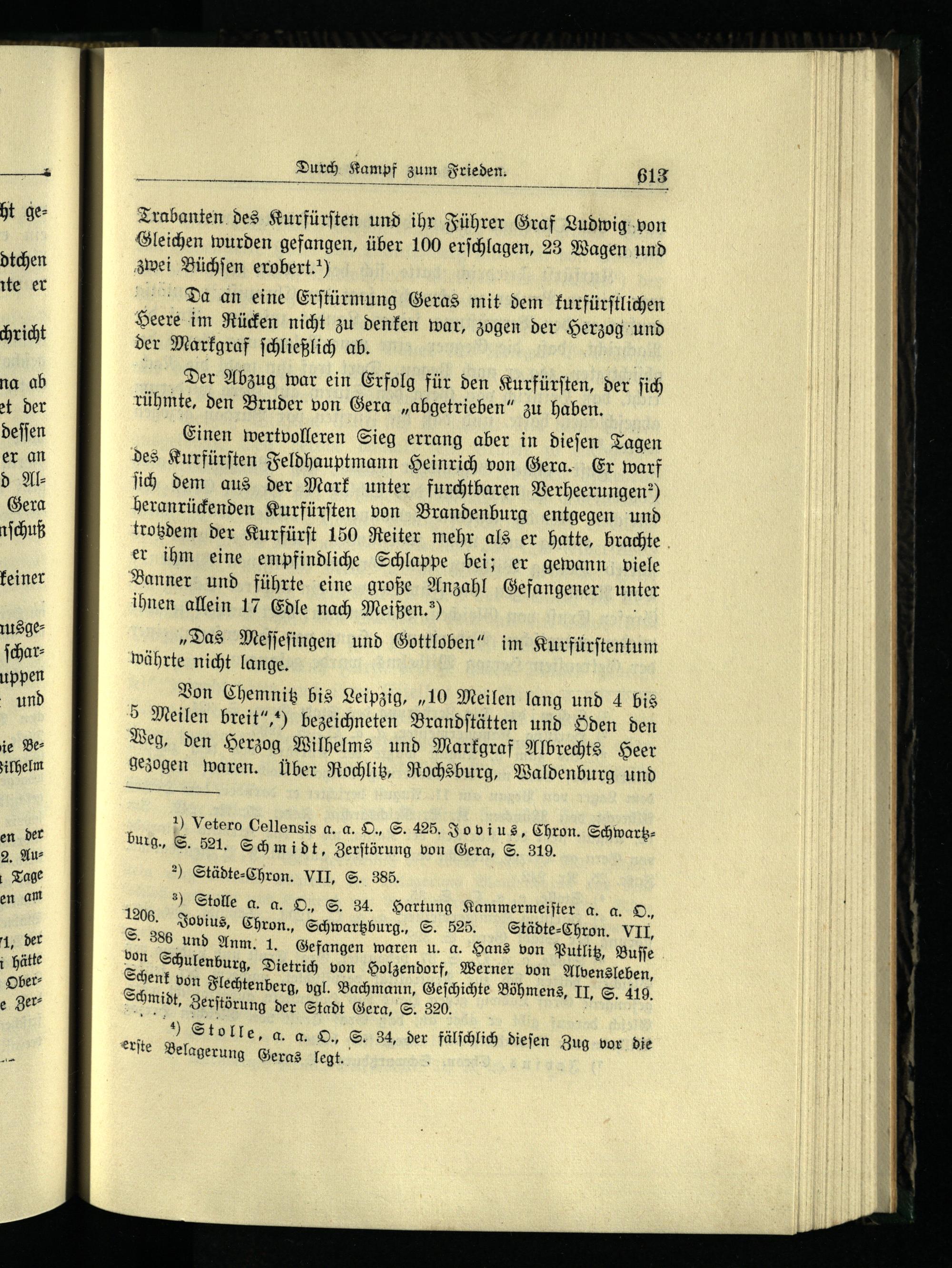 ) Stolle a. a. O., S. 34. Hartung Kammermeiſter a. a. O., 1206. Jovius, Chron., Schwartzburg, S. 525. Städte⸗Chron. VII, S. 386 und Anm. 1. Gefangen waren u. a. Hans von Putlitz. Buſſe Son Schulenburg, Dietrich von Holzendorf, Werner von Alvensleben, Schenk von Flechtenberg, vgl. Bachmann, Geſchichte Böhmens , II, S. 419. Schmidt, Zerſtörung der Stadt Gera , S. 320.
