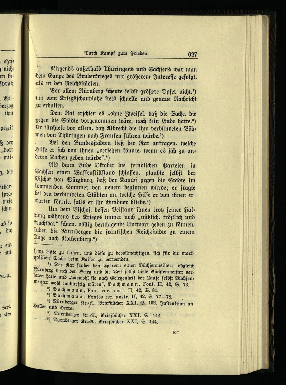 Als dann Ende Oktober die feindlichen Parteien in Sachſen einen Waffenſtillſtand ſchloſſen, glaubte ſelbſt der Biſchof von Würzburg , daß der Kampf gegen die Städte im kommenden Sommer von neuem beginnen würde; er fragte bei den verbündeten Städten an, welche Hilfe er von ihnen erwarten könnte, ſalls er ihr Bündner bliebe.“)