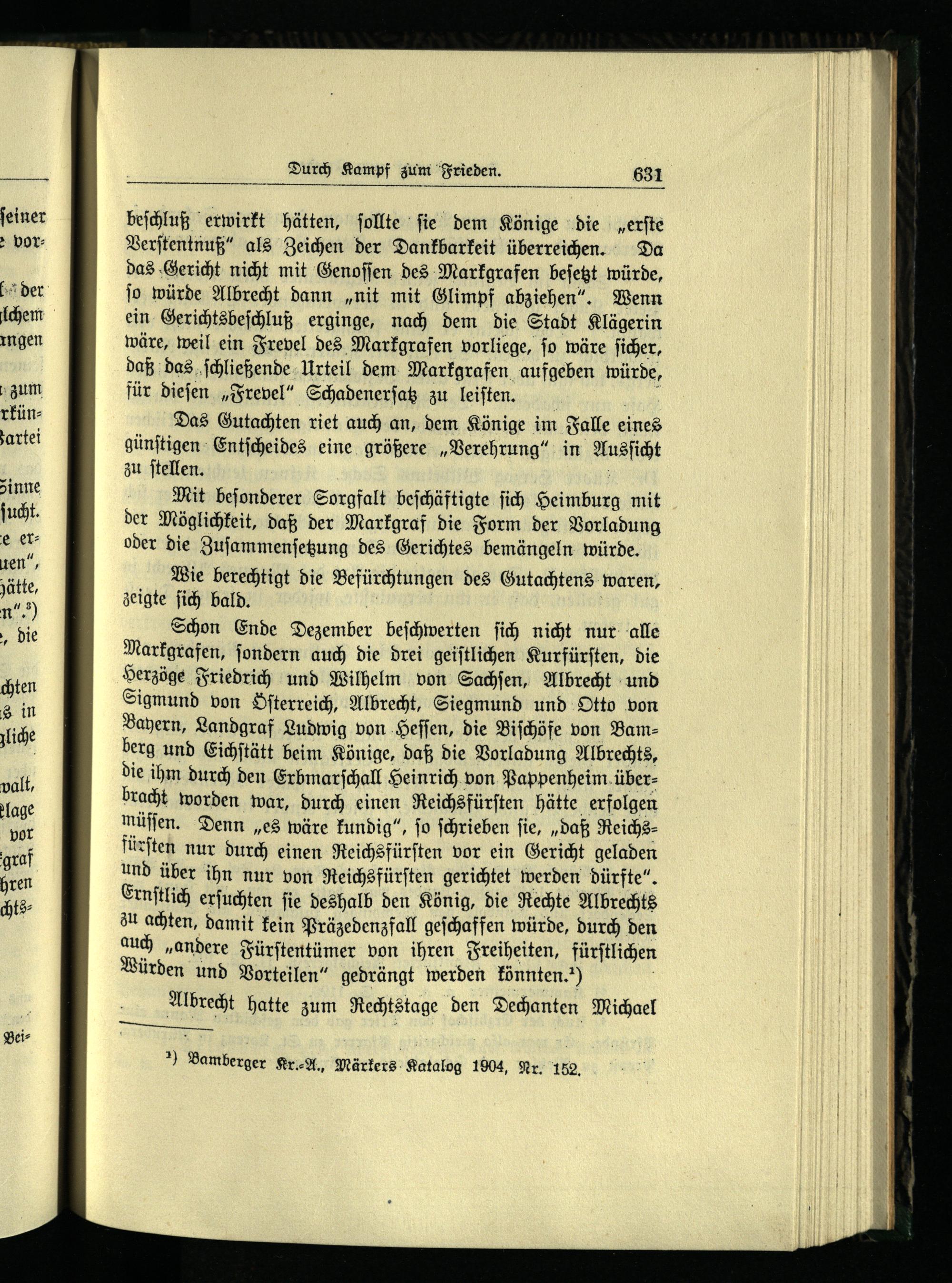 Mit beſonderer Sorgfalt beſchäftigte ſich Heimburg mit der Möglichkeit, daß der Markgraf die Form der Vorladung oder die Zuſammenſetzung des Gerichtes bemängeln würde.
