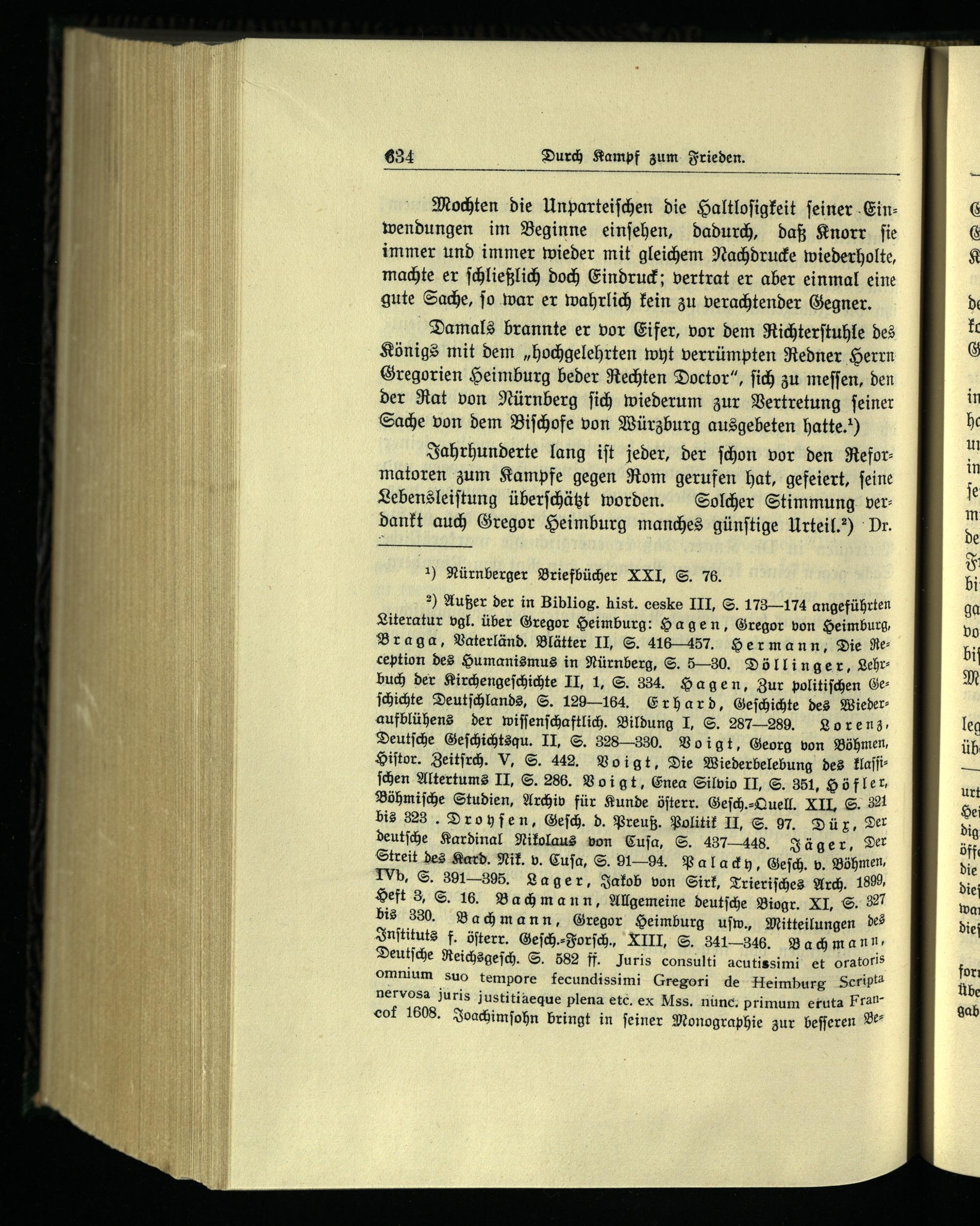 2) Außer der in Bibliog. hist. ceske III, S. 173—174 angeführten Literatur vgl. über Gregor Heimburg: Hagen, Gregor von Heimburg, Braga , Vaterländ. Blätter II, S. 416457. Hermann, Die geception des Humanismus in Nürnberg , S. 5— 30. Döllinger, Lehrbuch der Kirchengeſchichte II, 1, S. 334. Hagen, Zur politiſchen Geſchichte Deutſchlands , S. 129164. Erhard, Geſchichte des Wiederaufblühens der wiſſenſchaftlich. Bildung I, S. 287289. Lorenz, Deutſche Geſchichtsqu. II, S. 328330. Voigt, Georg von Böhmen, Hiſtor. Zeitſrch. V, S. 442. Voigt, Die Wiederbelebung des klaſſiſchen Altertums II, S. 286. Voi gt, Enea Silvio II, S. 351, Höfler, Böhmiſche Studien, Archiv für Kunde öſterr. Geſch.⸗Quell. XII. S. 321 bis 323. Droyſen, Geſch. d. Preuß. Politik II, S. 97. Dü x, Der deutſche Kardinal Nikolaus von Cuſa , S. 437448. Jäger, Der Streit des Kard. Nik. v. Cuſa, S. 9194. Palack y, Geſch. v. Böhmen , IVb, S. 391395. Lager, Jakob von Sirk, Trieriſches Arch. 1899 Heft 3, S. 16. Bachmann, Allgemeine deutſche Biogr. XI, S. 327 bis 330. Bachmann, Gregor Heimburg uſw., Mitteilungen des Inſtituts f. öſterr. Geſch.⸗Forſch., XIII, S. 341346. Bachmann, Deutſche Reichsgeſch. S. 582 ff. Juris consulti acutissimi et oratoris omnium suo tempore fecundissimi Gregori de Heimburg Script? nervosa juris justitiàeque plena etc. ex Mss. nunc. primum eruta Franof 1608. Joachimſohn bringt in feiner Monographie zur beſſeren Be
