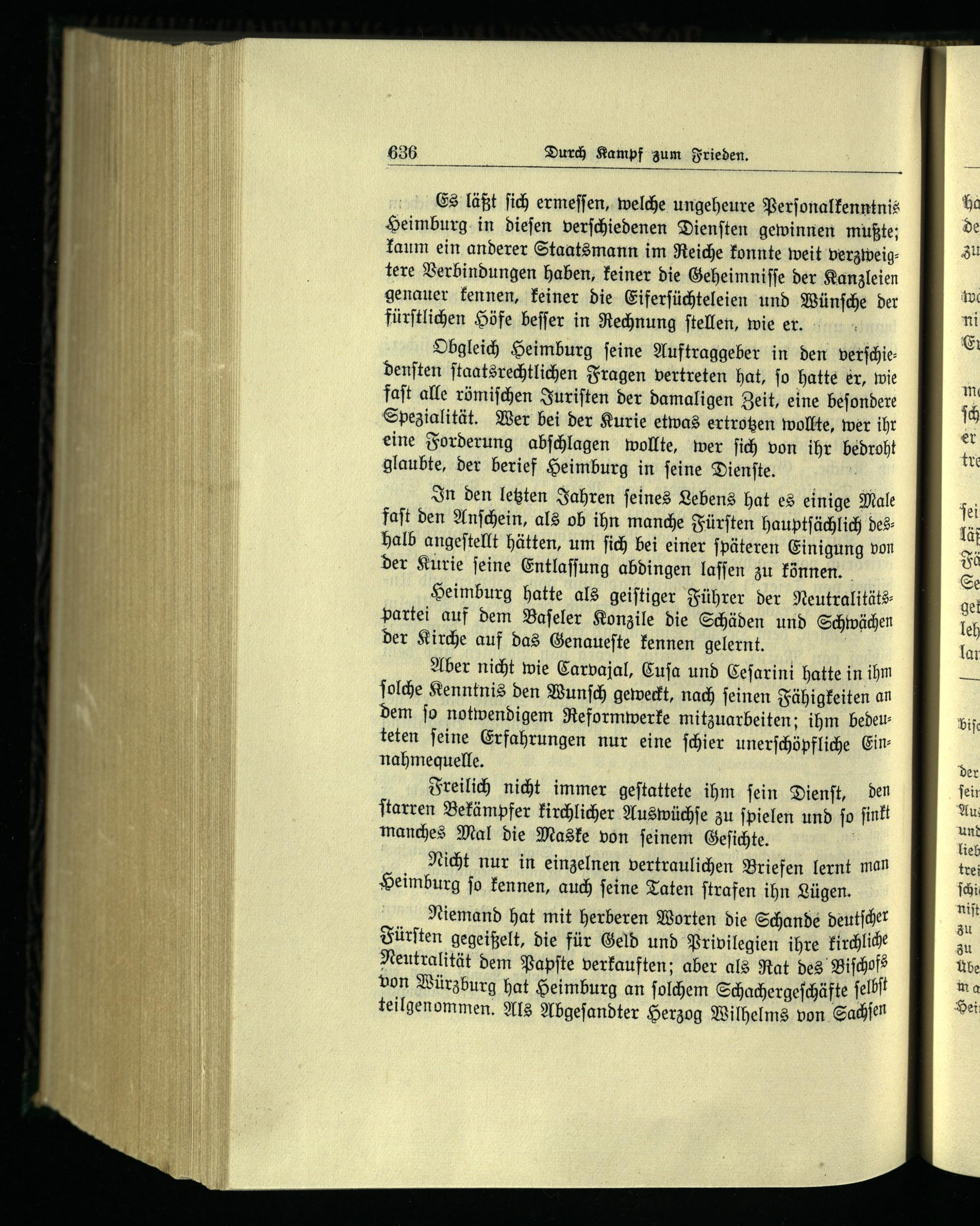 Heimburg hatte als geiſtiger Führer der Neutralitätspartei auf dem Baſeler Konzile die Schäden und Schwächen der Kirche auf das Genaueſte kennen gelernt.