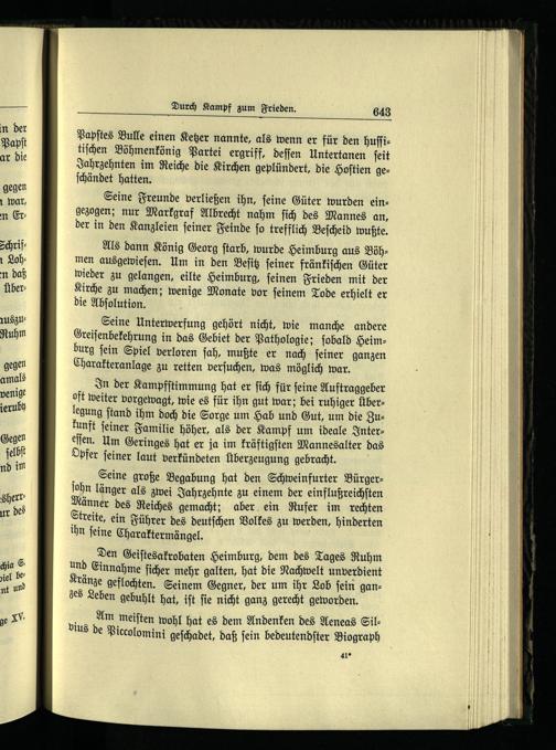 Am meiſten wohl hat es dem Andenken des Aeneas Sil vius de Piccolomini geſchadet, daß ſein bedeutendſter Biograph