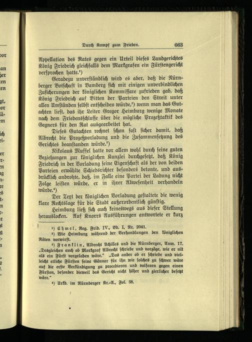 3) Franklin, Albrecht Achilles und die Nürnberger , Anm. 17. „Desgleichen auch ob Markgraf Albrecht ſchriebe und vorzöge, wie er nit als ein Fürſt vorgeladen wäre.“„Das ander ob er ſchriebe und vielleicht etliche Fürſten ſeine Gönner für ihn wie ſolches zu ſchwer wäre auf die erſte Verkündigung zu procedieren und volfaren gegen einen Fürſten , beſonder dieweil das Gericht nicht höher und zierlicher beſetzt wäre.“