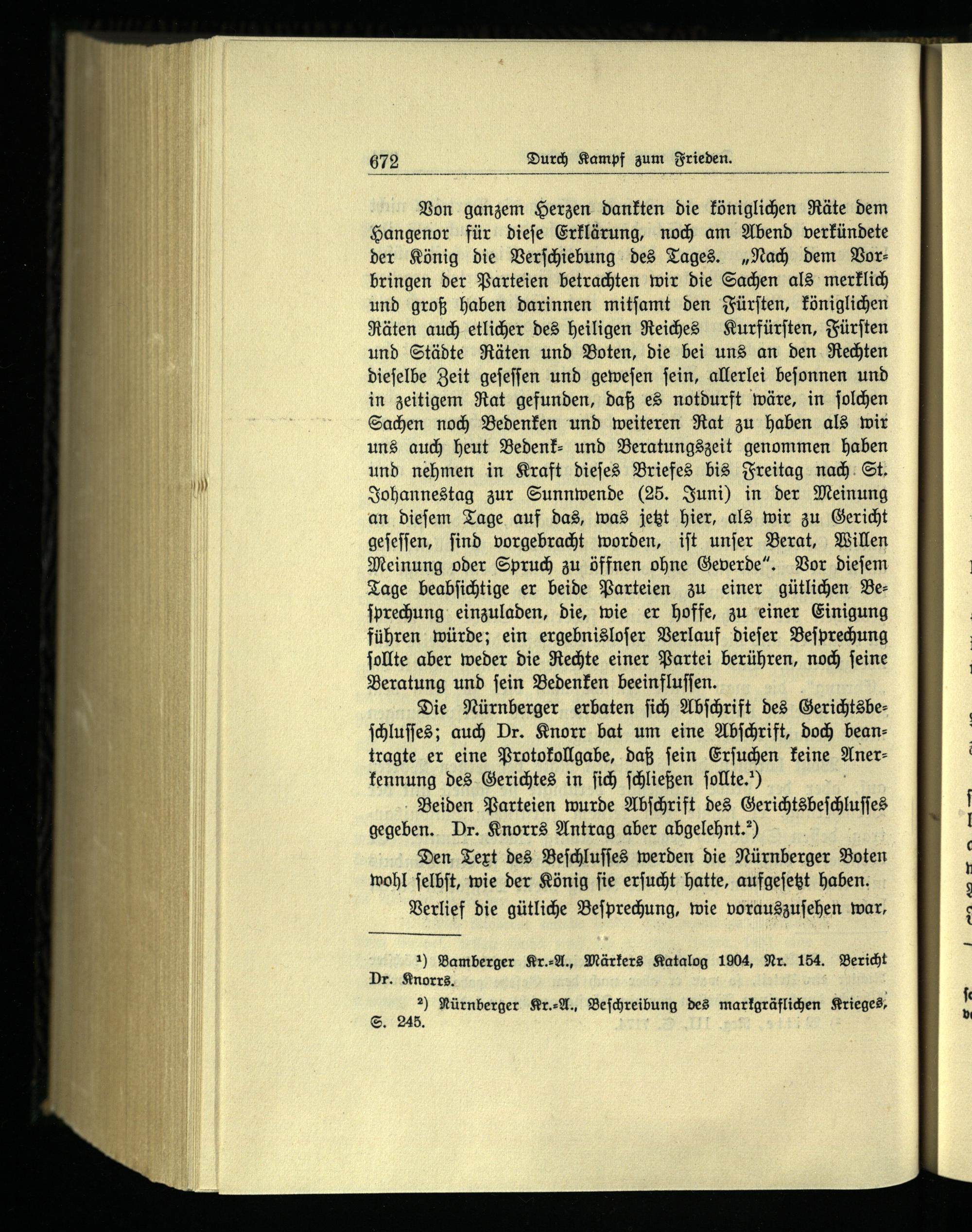 2) Nürnberger Kr.⸗A., Beſchreibung des markgräflichen Krieges, S. 245.