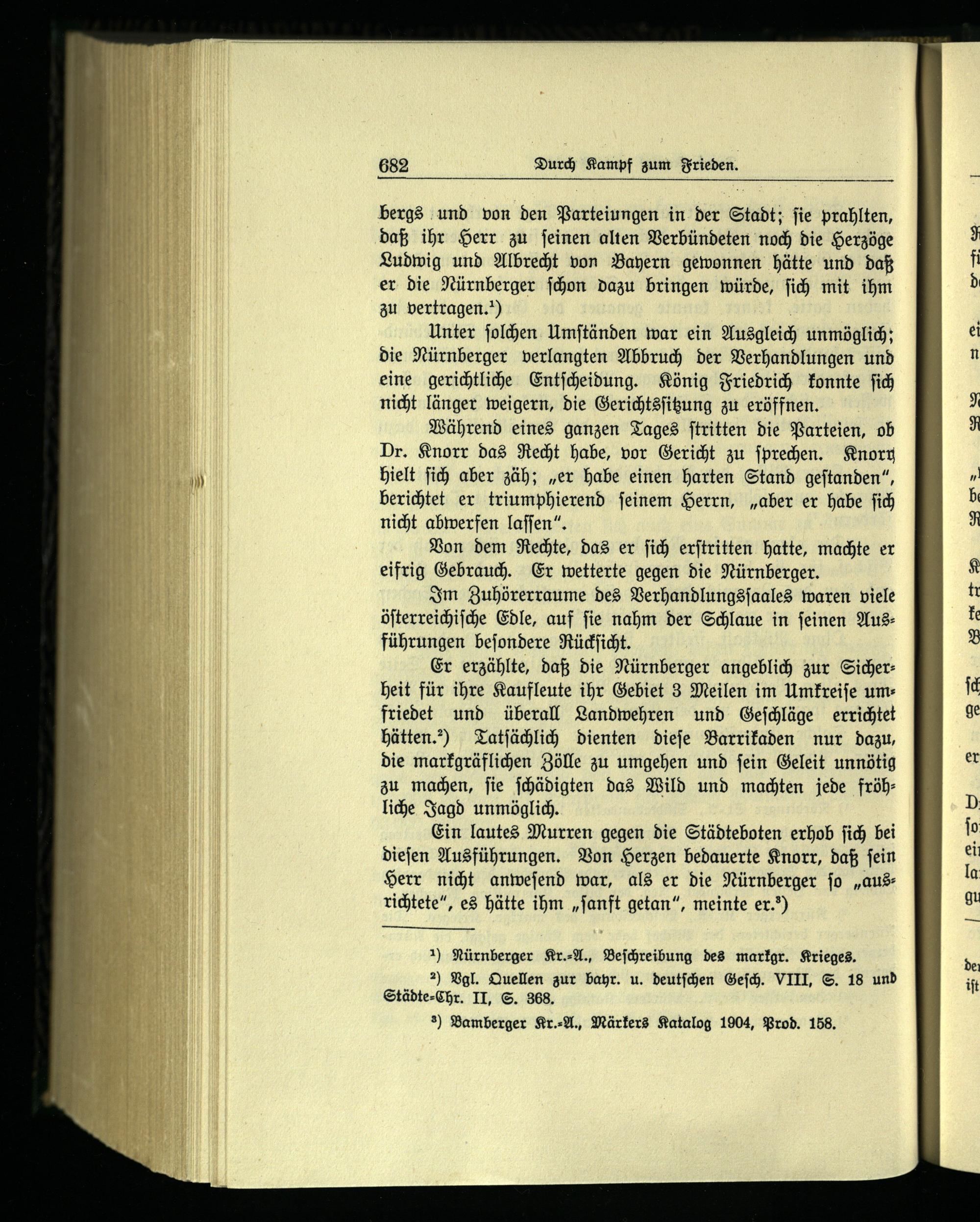 Unter ſolchen Umſtänden war ein Ausgleich unmöglich; die Nürnberger verlangten Abbruch der Verhandlungen und eine gerichtliche Entſcheidung. König Friedrich konnte ſich nicht länger weigern, die Gerichtsſitzung zu eröffnen.