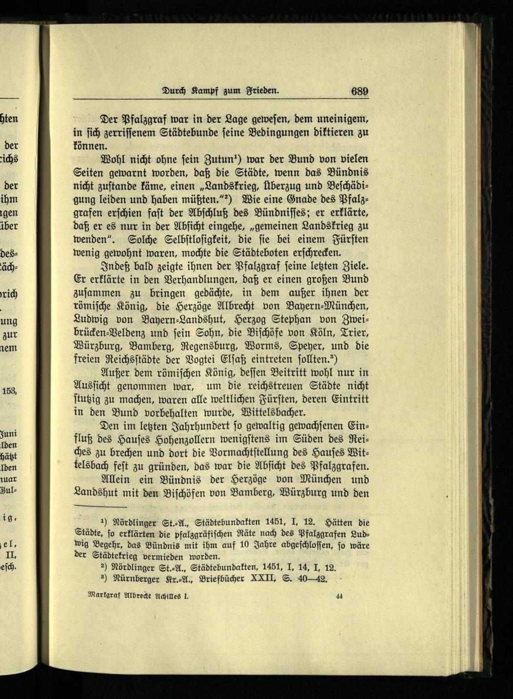 1) Nördlinger St.⸗A., Städtebundakten 1451, I, 12. Hätten die Städte, ſo erklärten die pfalzgräfiſchen Räte nach des Pfalzgrafen Ludwig Begehr, das Bündnis mit ihm auf 10 Jahre abgeſchloſſen, ſo wäre der Städtekrieg vermieden worden.