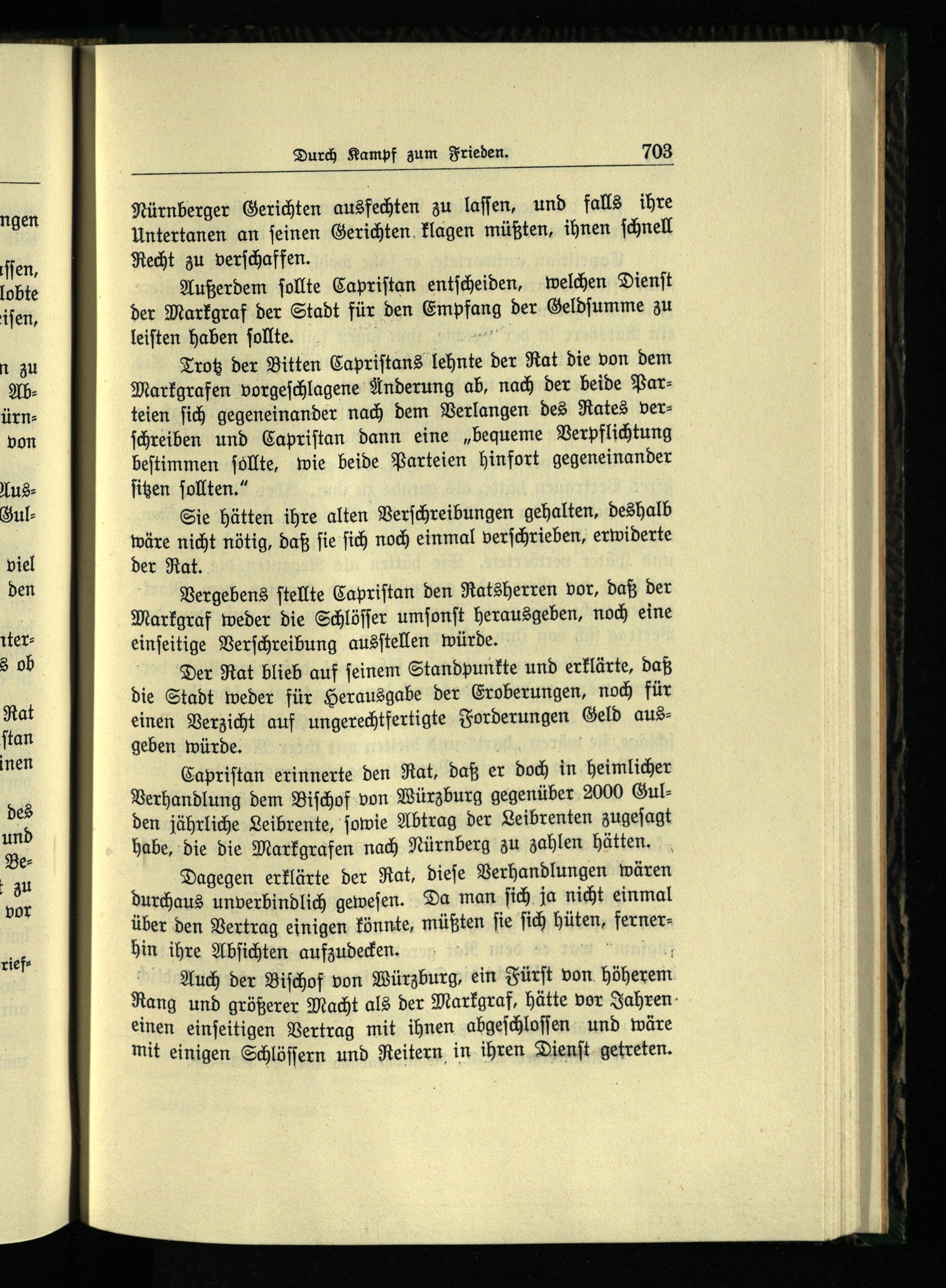 Capriſtan erinnerte den Rat, daß er doch in heimlicher Verhandlung dem Biſchof von Würzburg gegenüber 2000 Gulden jährliche Leibrente, ſowie Abtrag der Leibrenten zugeſagt habe, die die Markgrafen nach Nürnberg zu zahlen hätten.
