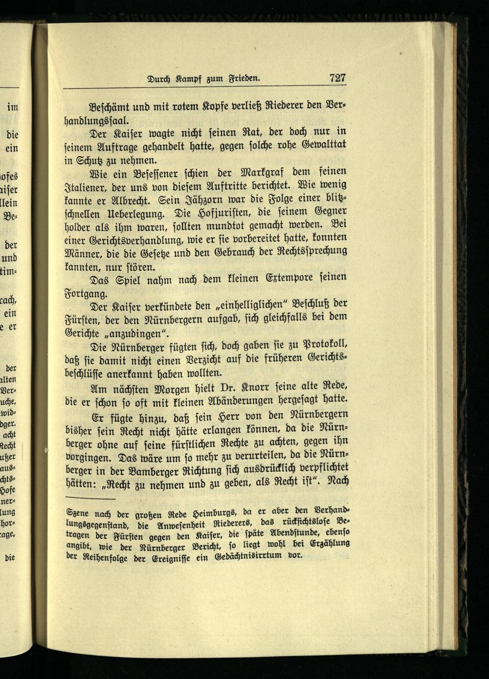 Die Nürnberger fügten ſich, doch gaben ſie zu Protokoll, daß fie damit nicht einen Verzicht auf die früheren Gerichtsbeſchlüſſe anerkannt haben wollten.