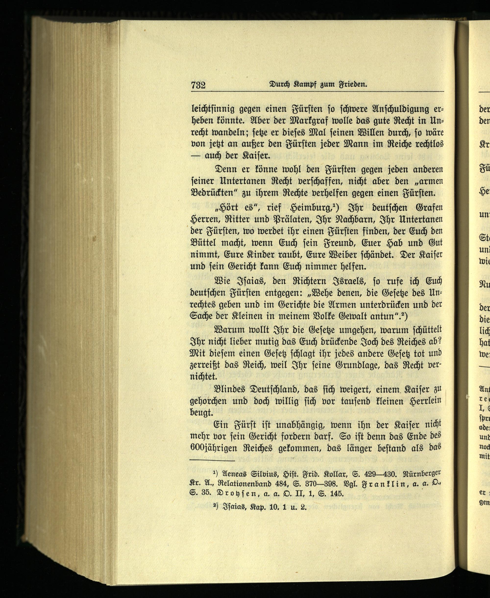 Wie Iſaias , den Richtern Israels, ſo rufe ich Euch deutſchen Fürſten entgegen:„Wehe denen, die Geſetze des Unrechtes geben und im Gerichte die Armen unterdrücken und der Sache der Kleinen in meinem Volke Gewalt antun“.?)