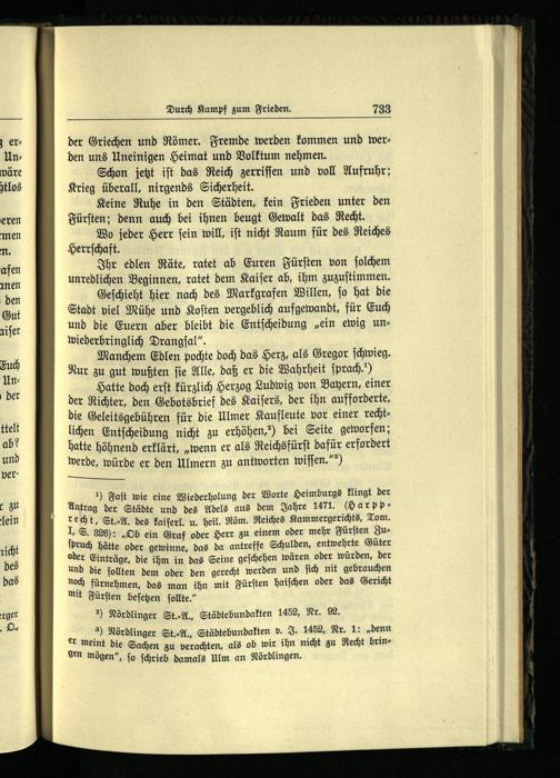 Hatte doch erſt kürzlich Herzog Ludwig von Bayern, einer der Richter, den Gebotsbrief des Kaiſers, der ihn aufforderte, die Geleitsgebühren für die Ulmer Kaufleute vor einer rechtlichen Entſcheidung nicht zu erhöhen,) bei Seite geworfen: hatte höhnend erklärt,„wenn er als Reichsfürſt dafür erfordert werde, würde er den Ulmern zu antworten wiſſen.“)