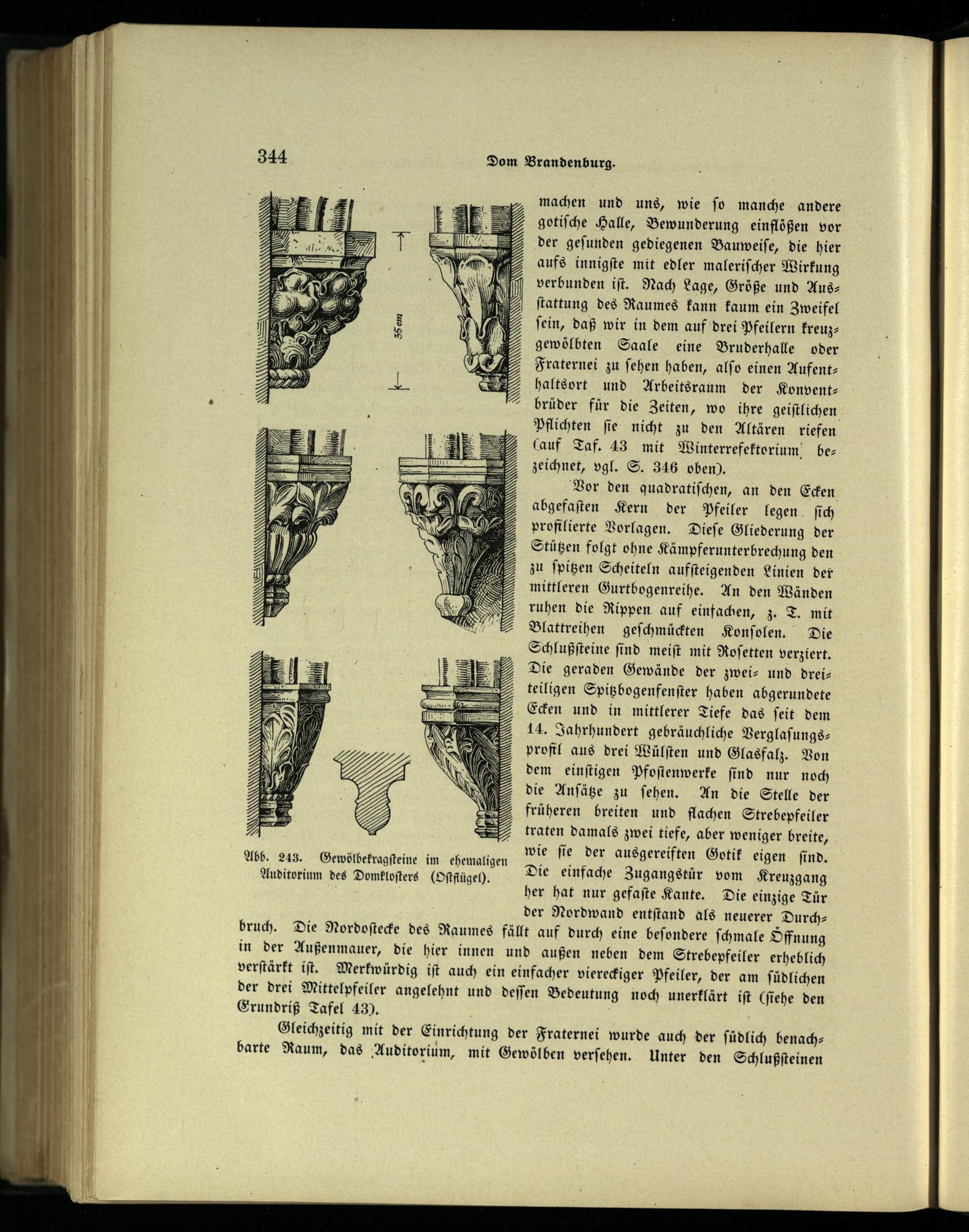 Gleichzeitig mit der Einrichtung der Fraternei wurde auch der ſüdlich benach— barte Raum, das Auditorium, mit Gewölben verſehen. Unter den Schlußſteinen