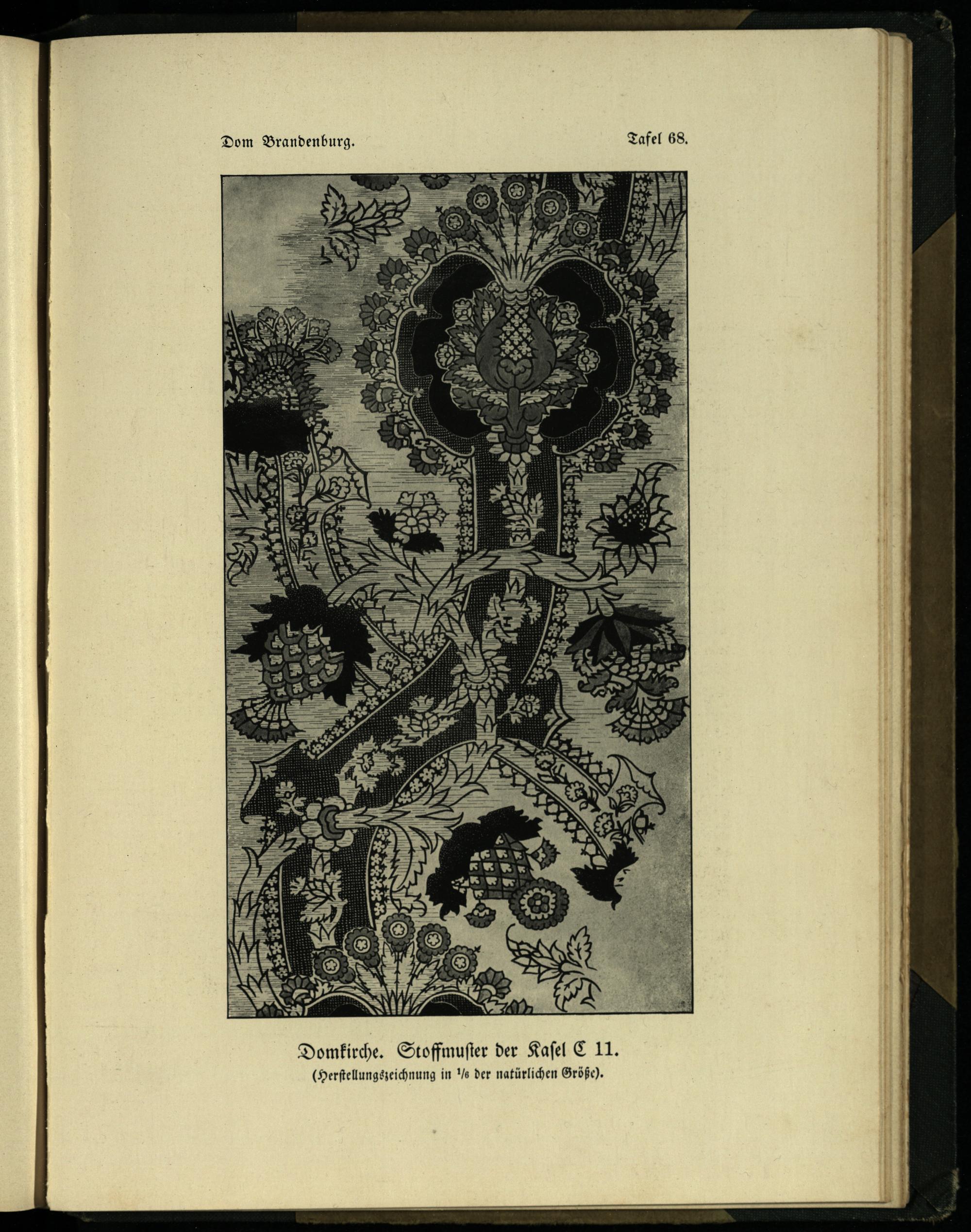 Domkirche. Stoffmuster der Kasel€ 11. ( Herstellungszeichnung in 6 der natürlichen Größe). Dom Brandenburg . Tafel 68. D