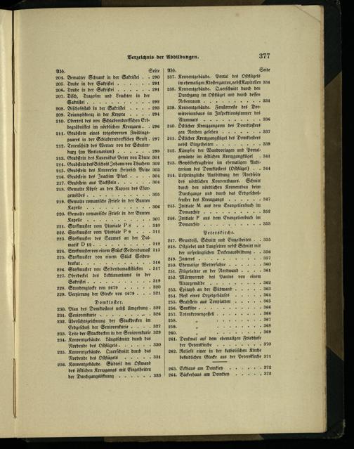 Reben ann 833 Konventgebäude. Fenſterreſte des Dormitoriumbaus im K des Alumnats 336 Bſtlicher. des Domlloſters gen Norden geſehen.+ 337 Bſtlicher Kreuzgangflügel des Domkloſterẽ nebſt Einzelheiten.. 889 Kämpfer der, md Portal gewände im öſtlichen Kreuzgangflügel 341 Gewölbekragſteine im ehemaligen Auditorium des Domkloſters(Oſtflügeh 344 Urſprüngliche Ausbildung der Nordſeite des nördlichen Konventbaues. Schnitt durch den nördlichen Konventbau beim Durchgange und durch das Erdgeſchoßfenſter des Kreuzgangs.. 347 Initiale M aus dem, im l,, A. 352 Initiale F aus dem. im Domarchiv 353 Peterskirche. Grundriß, Schnitt und Einzelheiten.. 355 Oſtgiebel und Langſeiten nebſt Schnitt mit der urſprünglichen Deckenausbildung.. 356 he,, KEN 357 Ehemalige Betterlahne. 3560 Flügelaltar an der Nordwand. 3641 Märtyrertod des n. von einem Altargemälde.+ 362 Epitaph an der Sadwand. 363 Reſt eines Orgelgehäuſes 364 Grabſtein aus Zonplatten.++++ 365 Bankſitze. w 366 Totenkronengeſtell... 366 ö. 367 , 368 . w 65868 Denkmal auf dem ehemaligen, der Peterskirche 370 Reliefs einer in der tatholiſchen"Sirche befindlichen Glocke aus der Peterskirche 371 Eckhaus am Domkieß.+.++ 372 Bäckerhaus am Domkieß..+++ 372