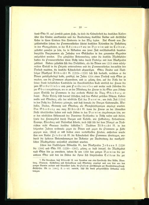 1) Die Annahme, daß Albrecht II. von Spandau aus eine Heerstraße über Kölln, Blumberg, Warnow, Heistelberg und Hohenfinow nach Oderberg angelegt und von hier aus den ganzen Barnim erobert und kolonisiert habe, die Passow (Forschungen zur Brandenburg-Preuß. Geschichte, Bd. 14, 1901, S. 1—43) vertritt, läßt sich durch zeitgenössische Urkunden nicht belegen.