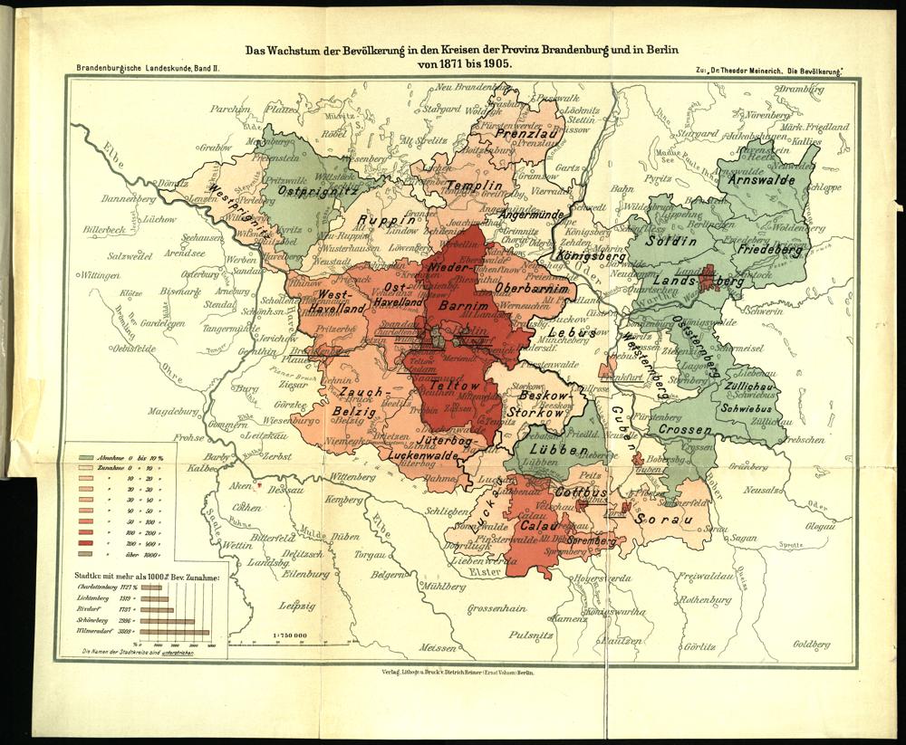 Das Wachstum der Bevölkerung in der Prvinz Brandenburg und in Berlin