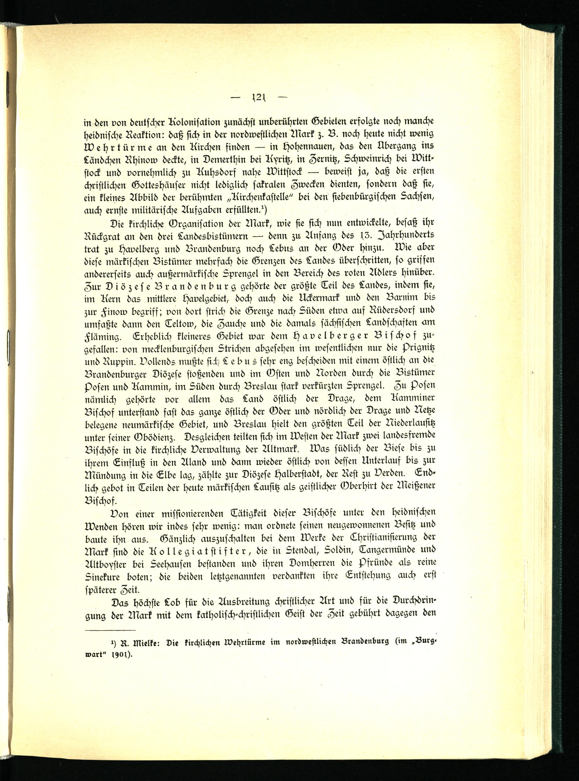 *) R. Melke: Die kirchlichen tvehrtürme im nordwestlichen Brandenburg (im »Burgwart" Igor).