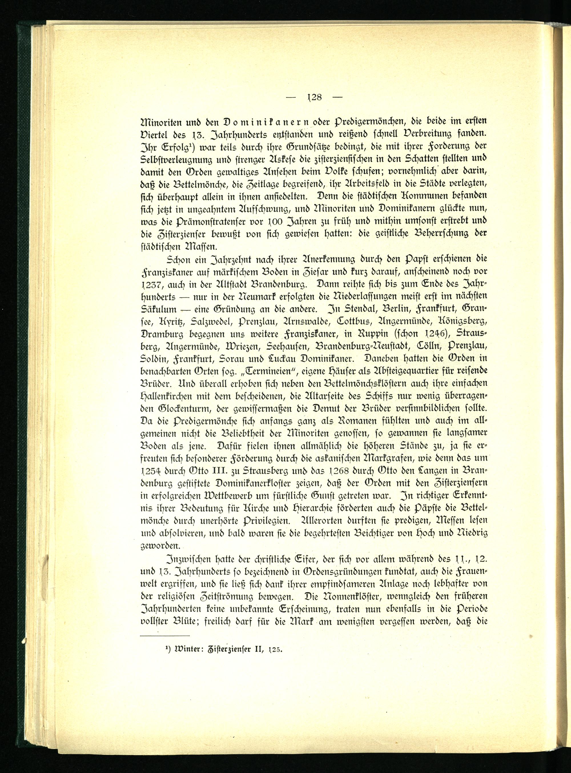 Inzwischen hatte der christliche Eifer, der sich vor allem während des 11-, 12. und 13. Jahrhunderts so bezeichnend in Ordensgründungen kundtat, auch die Frauenwelt ergriffen, und sie ließ sich dank ihrer empfindsameren Anlage noch lebhafter von der religiösen Zeitströmung bewegen. Die Nonnenklöster, wenngleich den früheren Jahrhunderten keine unbekannte Erscheinung, traten nun ebenfalls in die Periode vollster Blüte; freilich darf für die Mark am wenigsten vergessen werden, daß die
