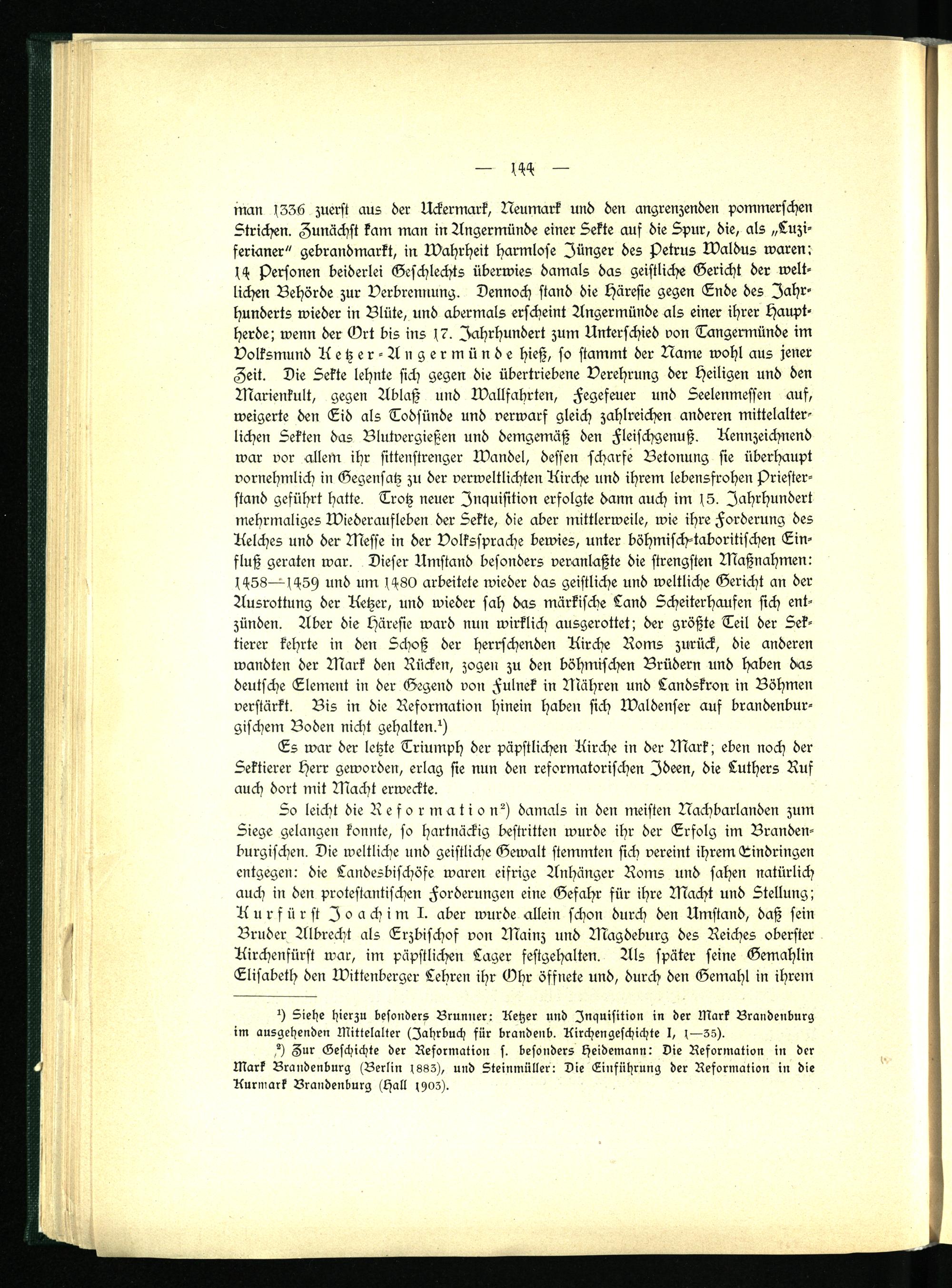 ch Zur Geschichte der Reformation s. besonders Heidemann: Oie Reformation in der Mark Brandenburg (Berlin 1885), und Steinmüller: Die Einführung der Reformation in die Kurmark Brandenburg (Hall 1A05).