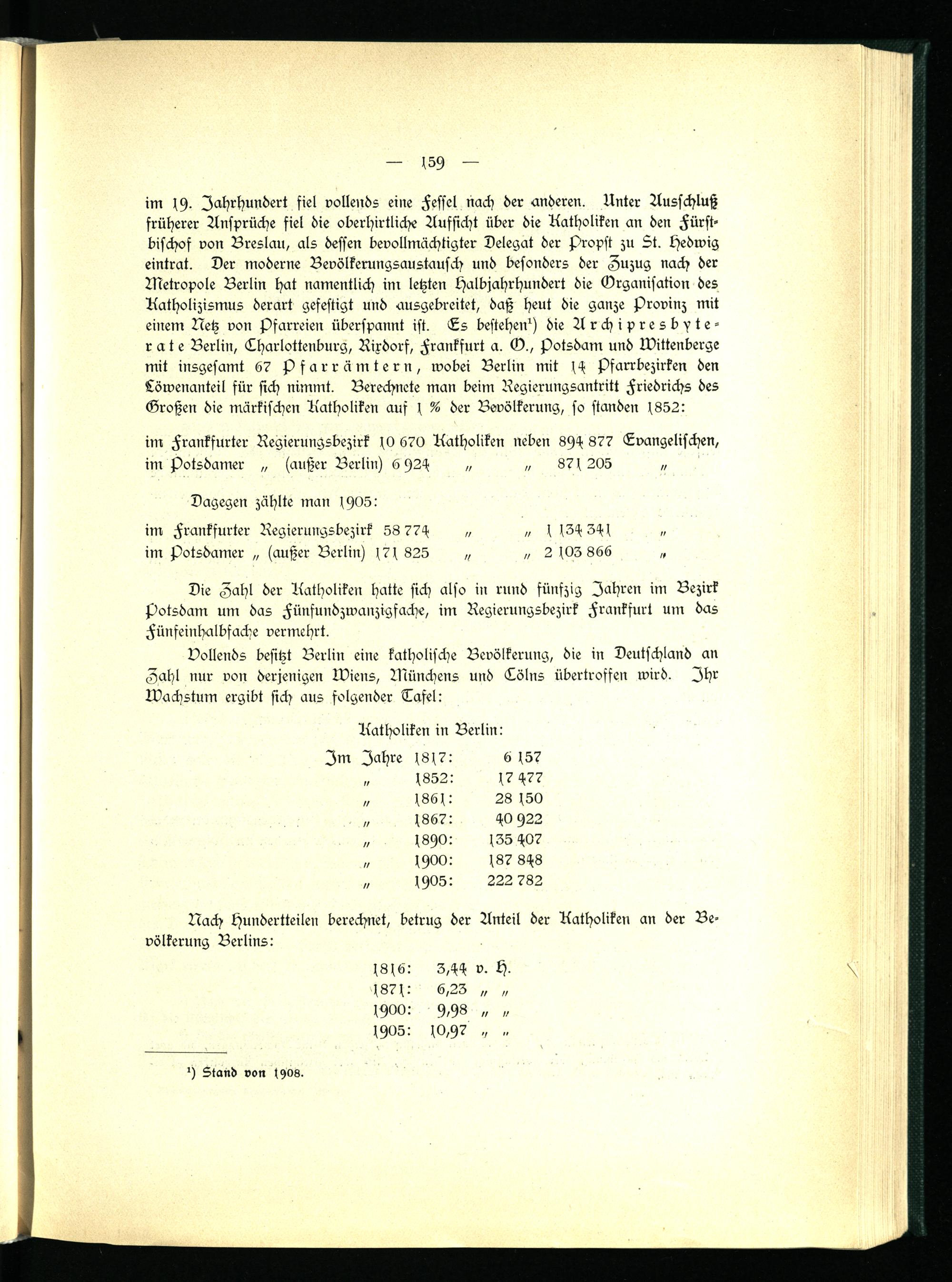 Die Zahl der Katholiken hatte sich also in rund fünfzig Jahren im Bezirk Potsdam um das Fünfundzwanzigfache, im Regierungsbezirk Frankfurt um das Fünfeinhalbfache vermehrt.