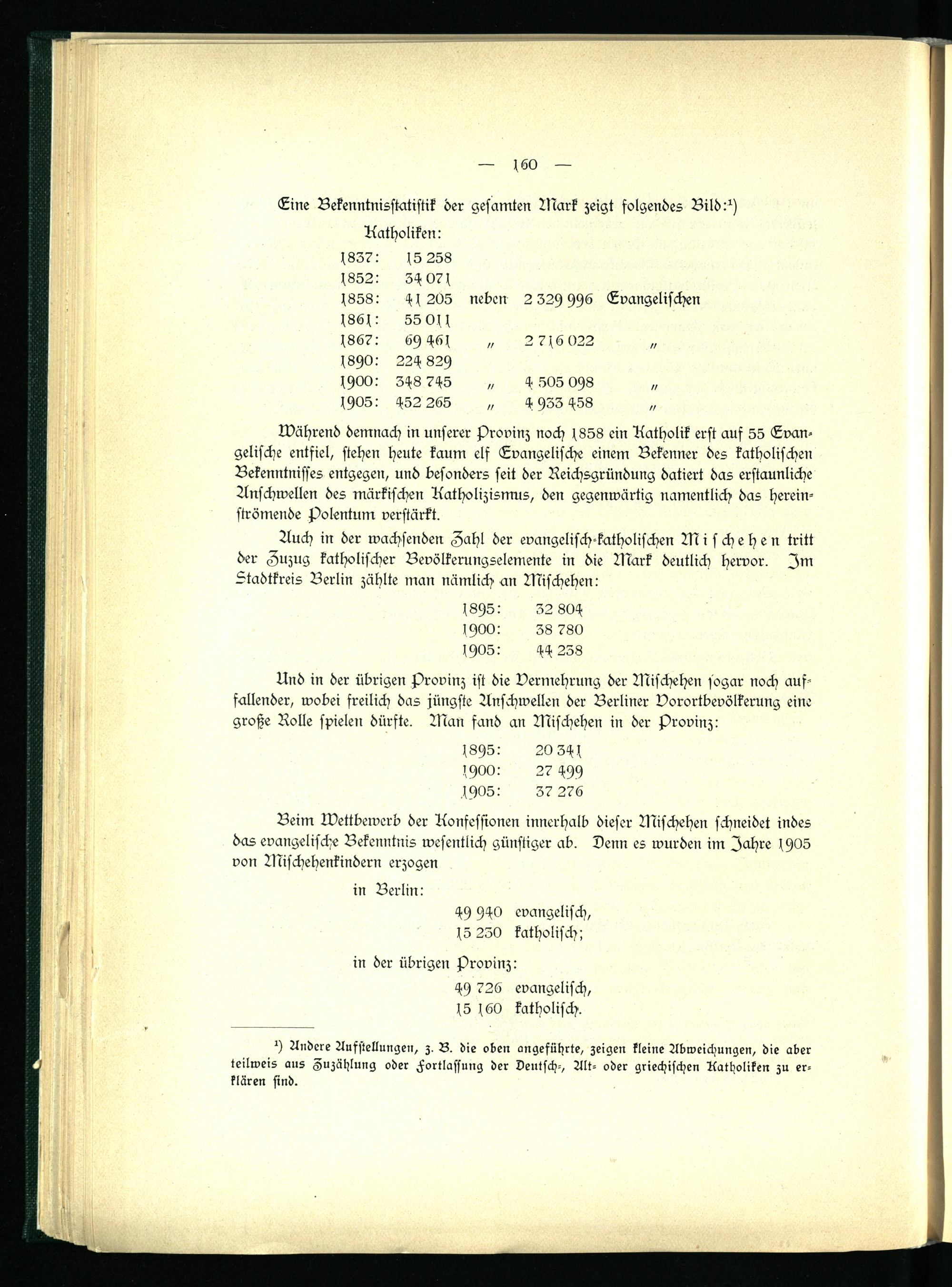 Auch in der wachsenden Zahl der evangelisch-katholischen Mischehen tritt der Zuzug katholischer Bevölkerungselemente in die Mark deutlich hervor. Zm Stadtkreis Berlin zählte man nämlich an Mischehen:
